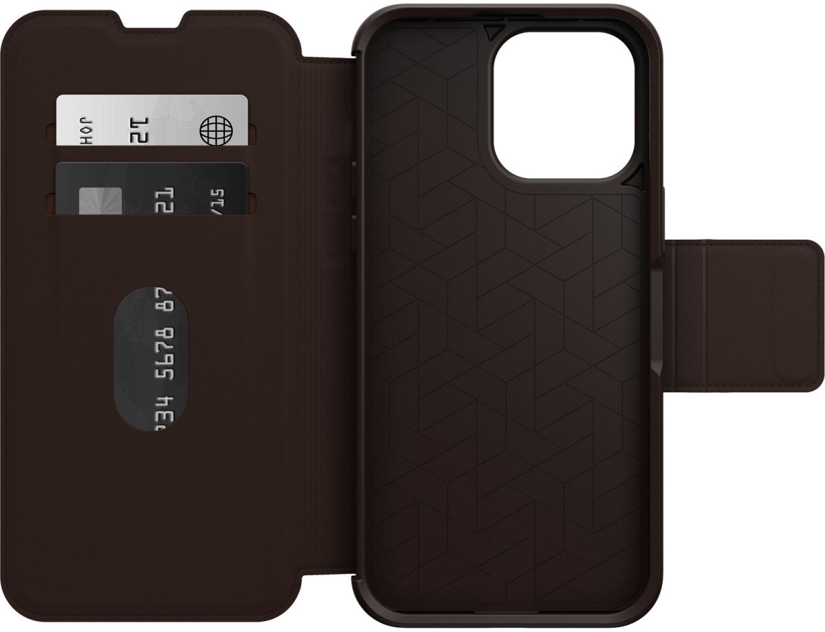 Η θήκη Strada Series της Otterbox από γνήσιο δέρμα, είναι η μόνη θήκη για το αγαπημένο σας iPhone 14 Pro Max, που συνδυάζει διαχρονικό ιταλικό σχέδιο, κομψή χειροτεχνία και αξιόπιστο OtterBox Drop + Protection.