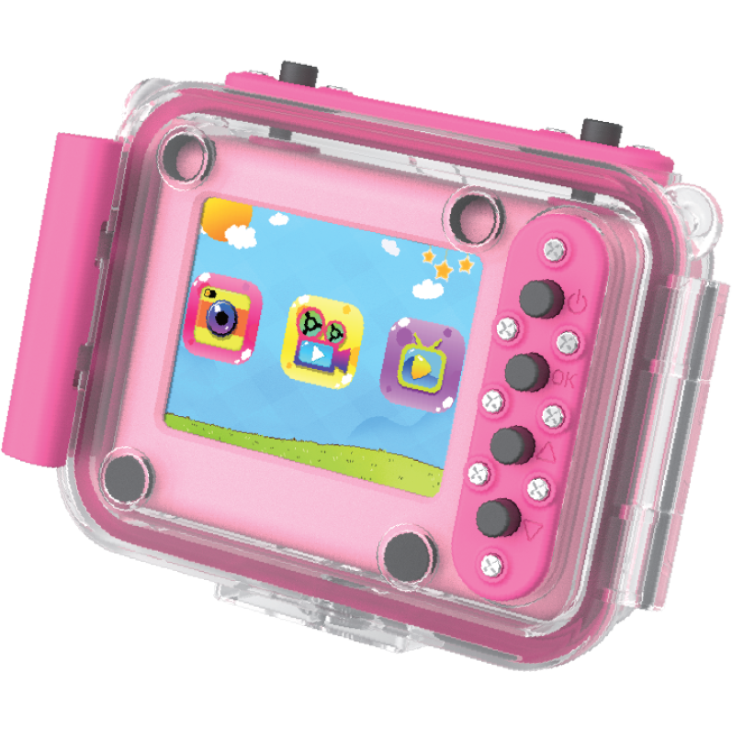 Η αδιάβροχη θήκη προστατεύει την κάμερα από το νερό, την άμμο και τη σκόνη, διασφαλίζοντας ότι θα παραμείνει λειτουργική για πολλά χρόνια. Διαθέτει επίσης ενσωματωμένα παιχνίδια που θα κρατήσουν τα παιδιά απασχολημένα για ώρες! Τέλος, έρχεται εξοπλισμένη με πληθώρα συνοδευτικών αξεσουάρ που διασφαλίζουν την ασφαλή χρήση της.