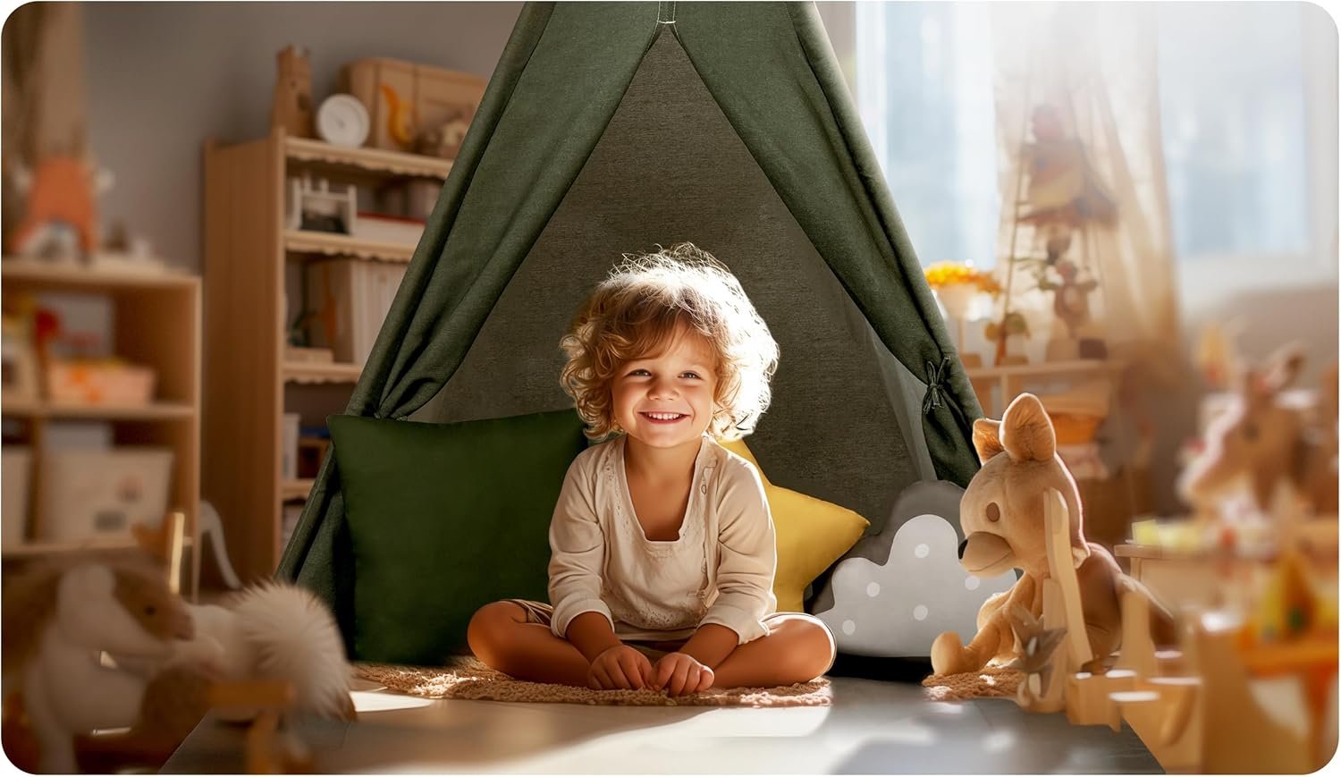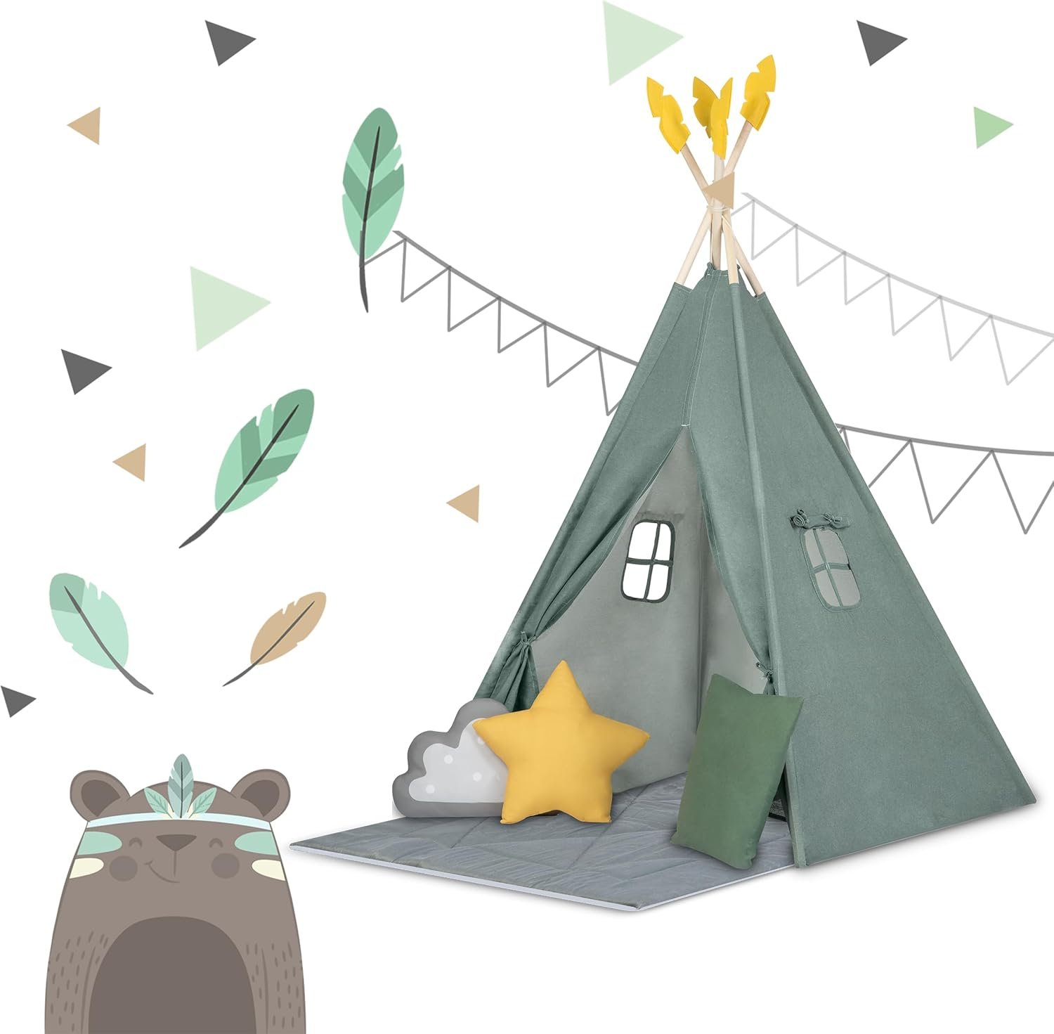 Η παιδική σκηνή Teepee είναι η τέλεια προσθήκη σε κάθε παιδικό δωμάτιο, χαρίζοντας στα παιδιά έναν χώρο γεμάτο ζεστασιά και μοναδικές ώρες παιχνιδιού. Με φυσικά υλικά υψηλής ποιότητας, μαξιλάρια, χαλάκι το οποίο μπορείτε να το τοποθετήσετε και εκτός σκηνής και μια γιρλάντα, αυτό το tipi θα γίνει το αγαπημένο τους σημείο!