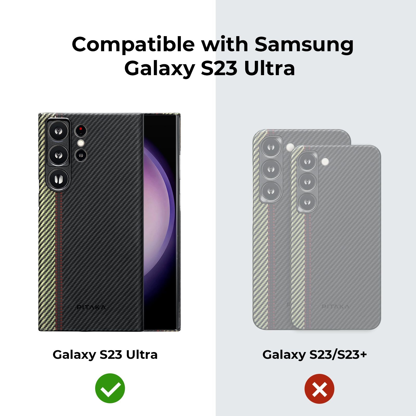 Η θήκη είναι συμβατή μόνο με το Samsung Galaxy S23 Ultra και όχι με το Samsung Galaxy S23 ή S23 Plus.