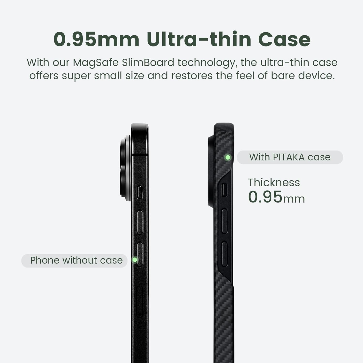 Ακόμη και με τους ενσωματωμένους μαγνήτες MagSafe, το πάχος της είναι μόλις 0.95 mm, 600D και με ελάχιστο βάρος σχεδόν 19gr, είναι ελαφρύτερη και από 2 νομίσματα. Χρησιμοποιώντας την τεχνολογία MagSafe SlimBoard™, ενισχύθηκαν οι ισχυροί μαγνήτες με τη ρητίνη N52SH σε μια λεπτή πλάκα, κάνοντας τη θήκη λεπτή και ελαφριά. Ο σχεδιασμός της θήκης επιλέχτηκε πολύ προσεκτικά και με έμφαση στη λεπτομέρεια, ώστε να διαμορφώσει ένα μοναδικό στυλ στο νέο σας iPhone 15.