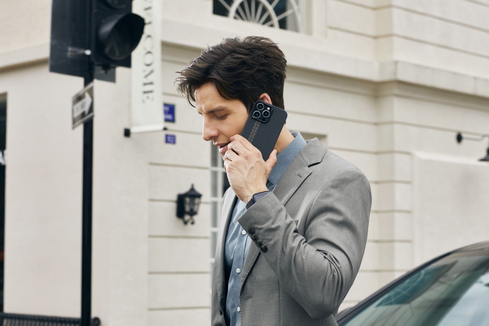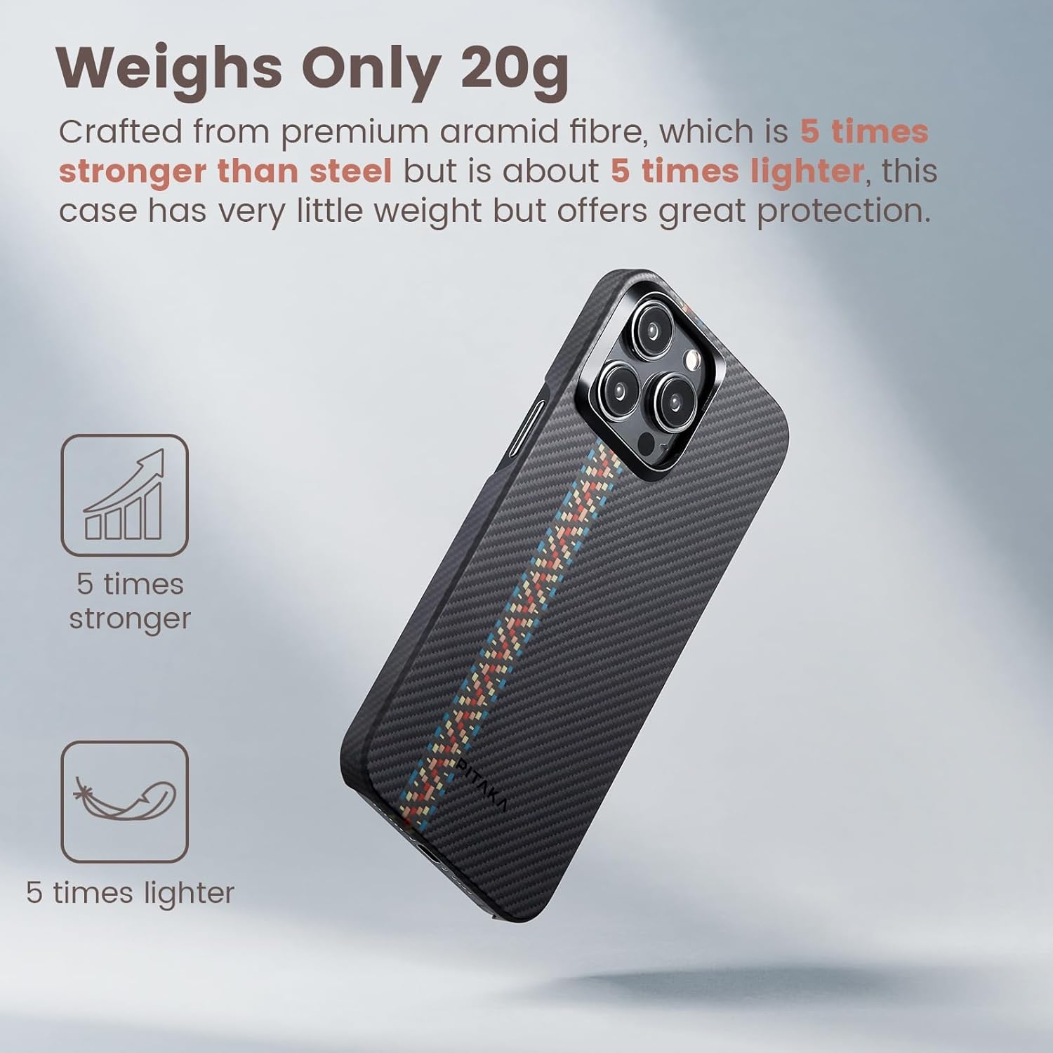 Η θήκη είναι κατασκευασμένη με χρήση ινών αραμιδίου αεροδιαστημικής ποιότητας, η οποία είναι 5 φορές ισχυρότερη από το ατσάλι αλλά είναι περίπου 5 φορές ελαφρύτερη. Προσφέρει μινιμαλιστικό στυλ, ώστε να απολαύσετε τον αυθεντικό σχεδιασμό του iPhone 15 Pro Max και να εκτιμήσετε την ομορφιά του όσο το δυνατόν περισσότερο. Η κοπή λοξοτομής κάνει τη θήκη να φαίνεται πιο λεπτή και πιο άνετη στο κράτημα.