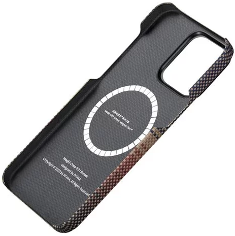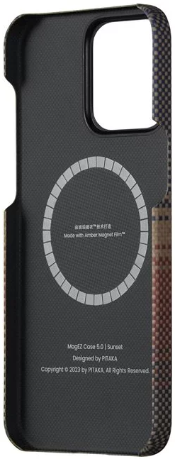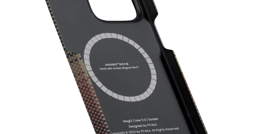 Κατασκευασμένη με Amber Magnet Film™, μια πρωτοποριακή τεχνολογία επίστρωσης με μαγνήτη χωρίς κόλλα που αναπτύχθηκε από την Pitaka το 2023 και εφαρμόστηκε για πρώτη φορά στη σειρά MagEZ Case 5. Η τεχνολογία χρησιμοποιεί μια εξειδικευμένη διαδικασία επικάλυψης προκειμένου να δημιουργήσει ένα λεπτό στρώμα στην επιφάνεια των μαγνητών. Κατά τη διάρκεια αυτής της διαδικασίας, εφαρμόζονται υψηλή θερμοκρασία και υψηλή πίεση, επιτρέποντας στην επικάλυψη να ενσωματωθεί στο κέλυφος και τη ρητίνη που περιέχει ίνες αραμιδίου. Μέσω αυτής της διαδικασίας, οι μαγνήτες επικαλύπτονται πλήρως από ίνες αραμιδίου και ρητίνη, καθώς αποκτούν μια διαφανή όψη που μοιάζει με κεχριμπάρι.