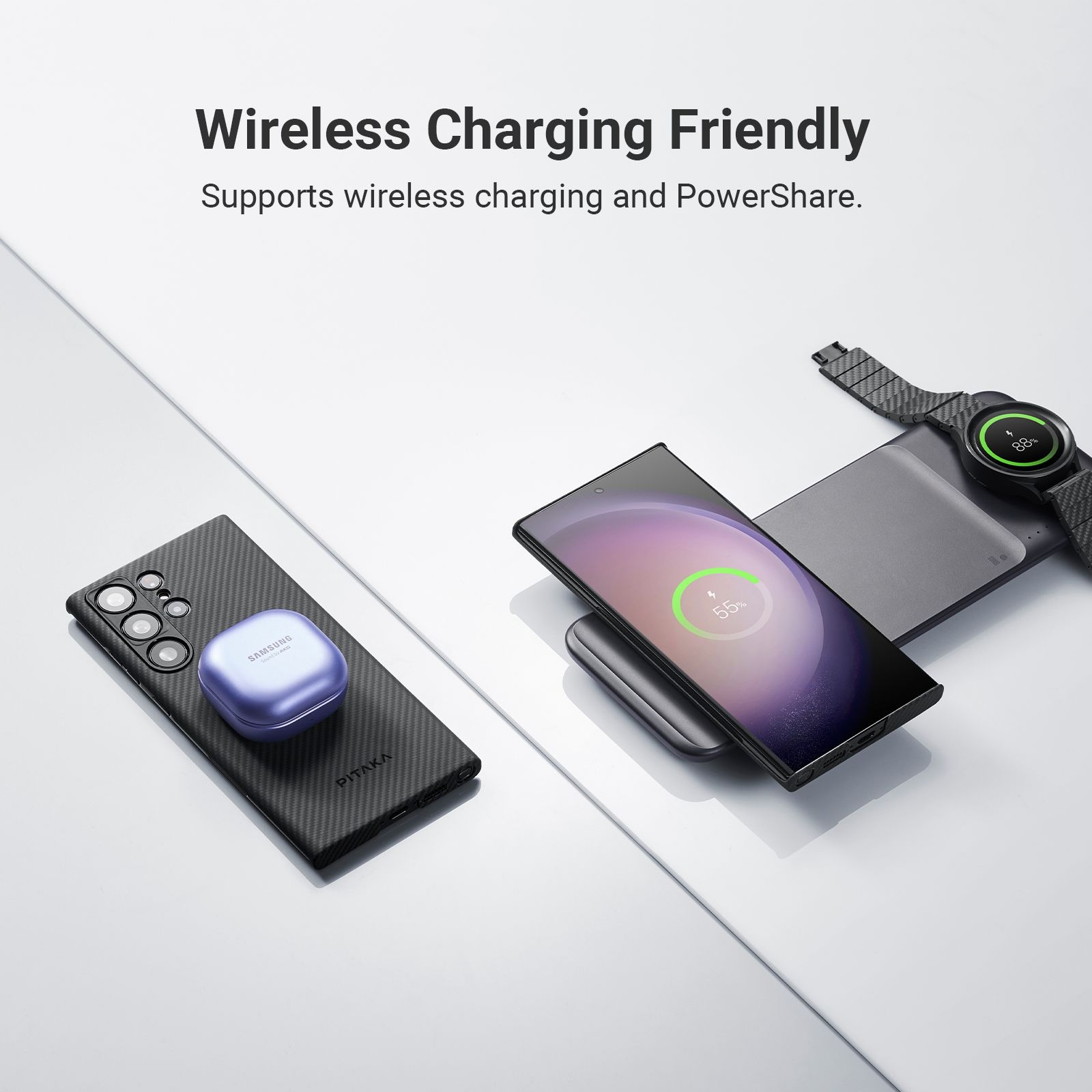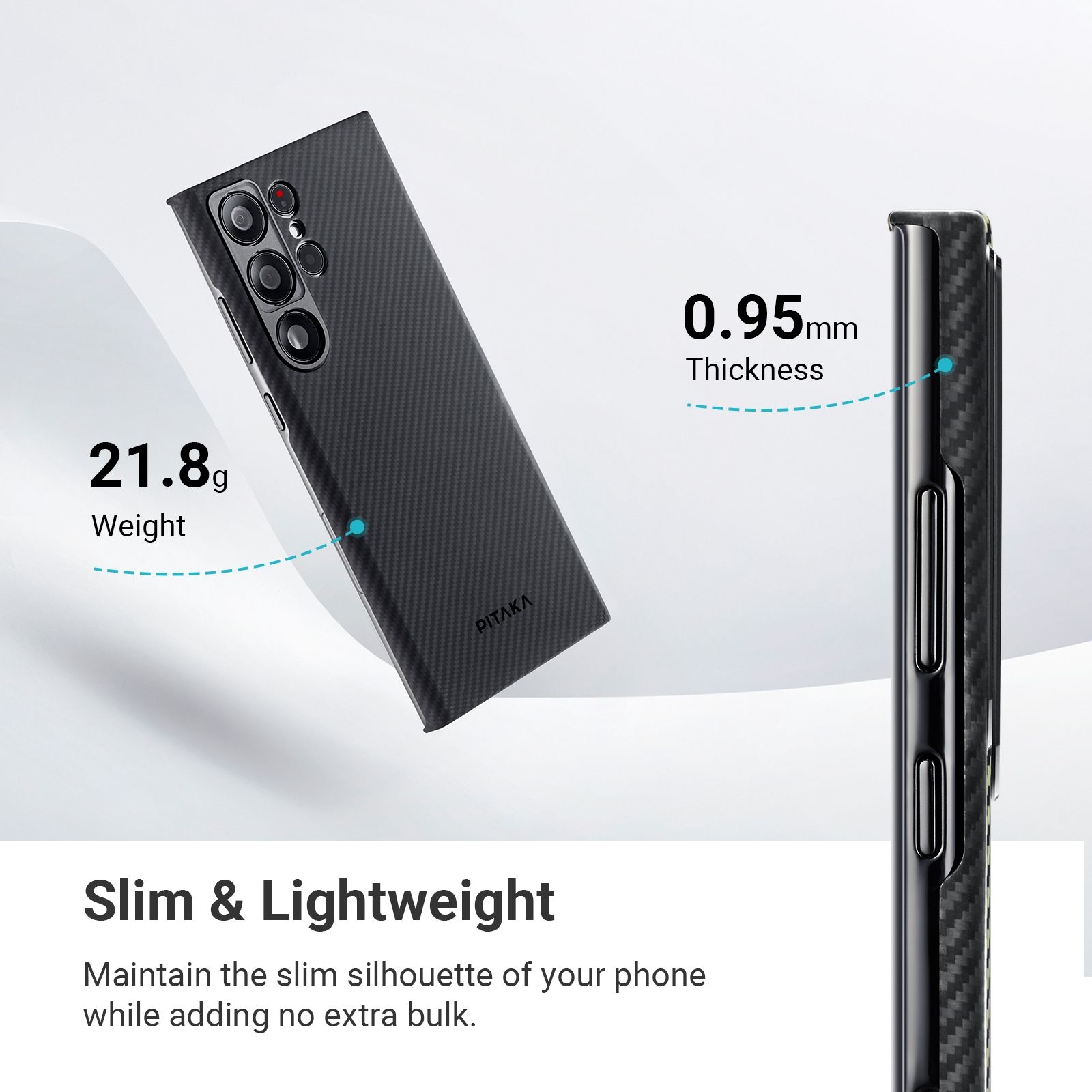 Η θήκη είναι κατασκευασμένη με χρήση ινών αραμιδίου αεροδιαστημικής ποιότητας, η οποία είναι 5 φορές ισχυρότερη από το ατσάλι αλλά είναι περίπου 5 φορές ελαφρύτερη. Προσφέρει μινιμαλιστικό στυλ, ώστε να απολαύσετε τον αυθεντικό σχεδιασμό του Samsung Galaxy S23 Ultra και να εκτιμήσετε την ομορφιά του όσο το δυνατόν περισσότερο. Η κοπή λοξοτομής κάνει τη θήκη να φαίνεται πιο λεπτή και πιο άνετη στο κράτημα.