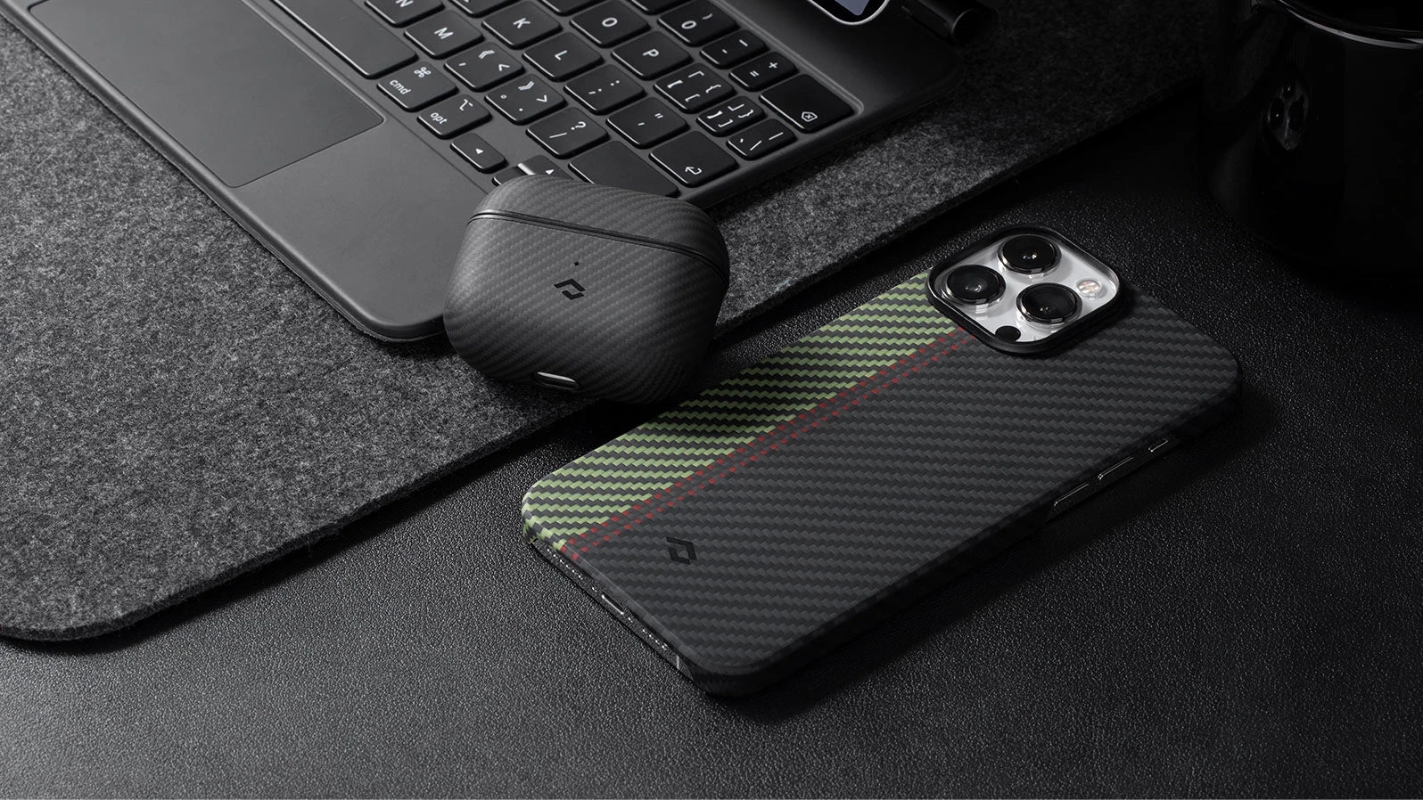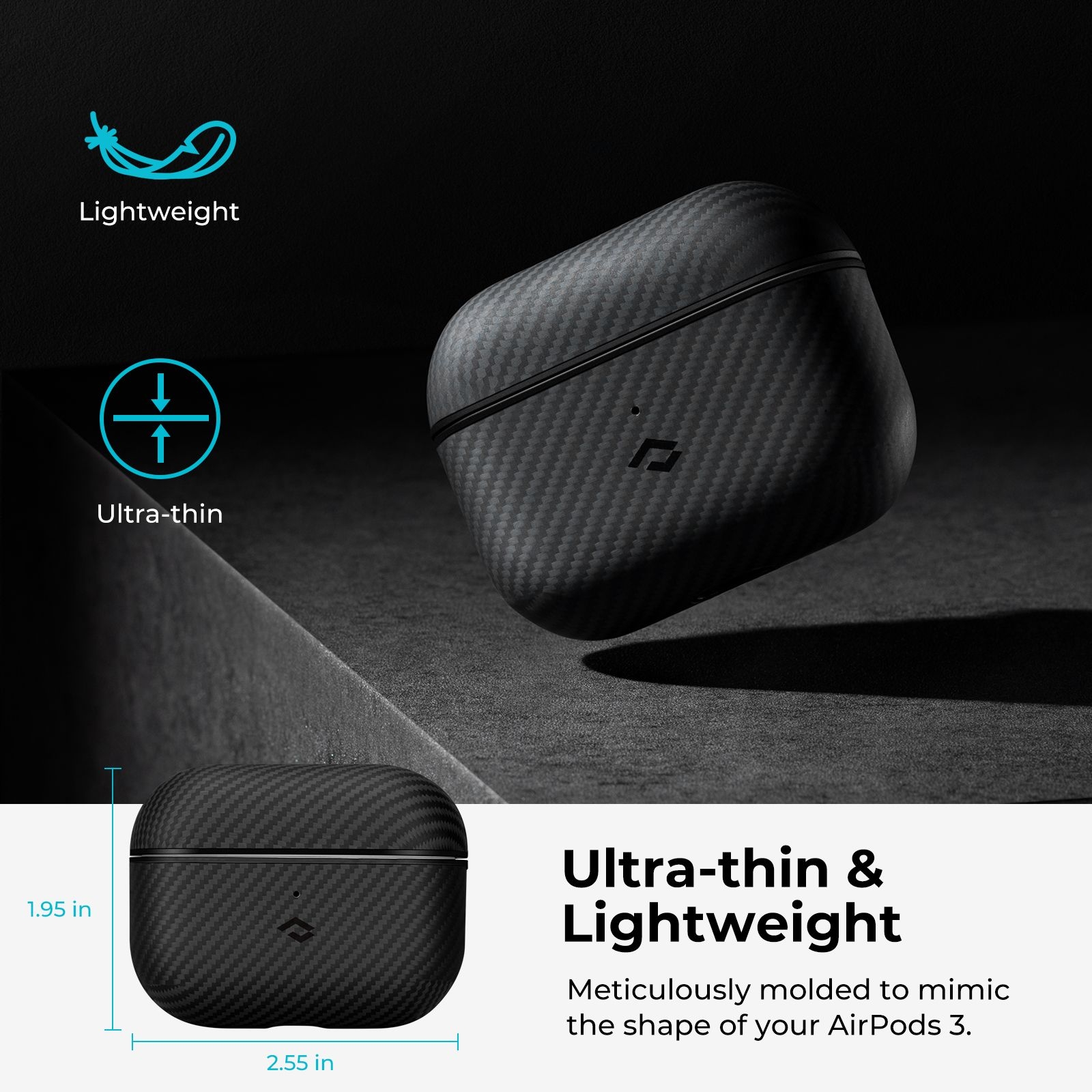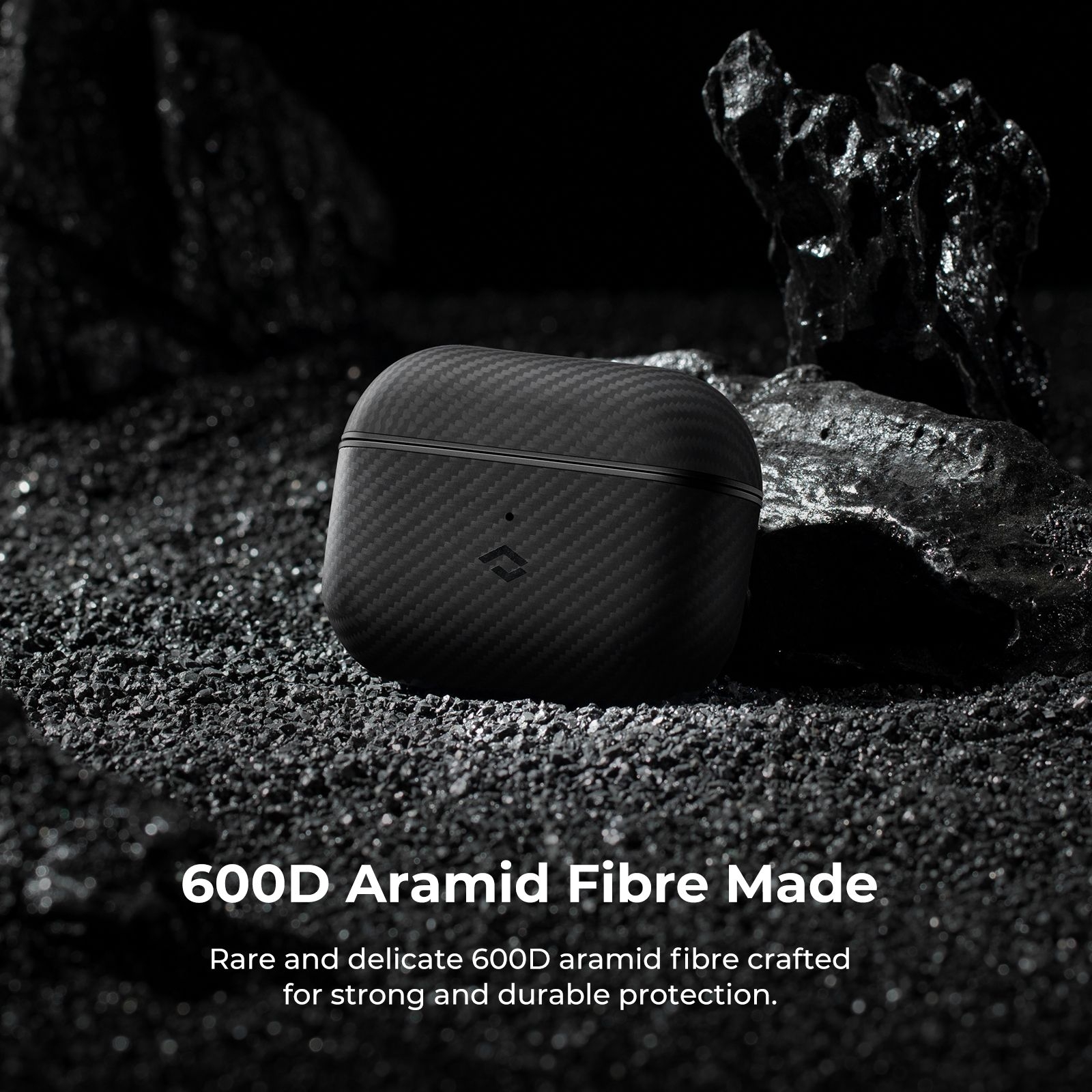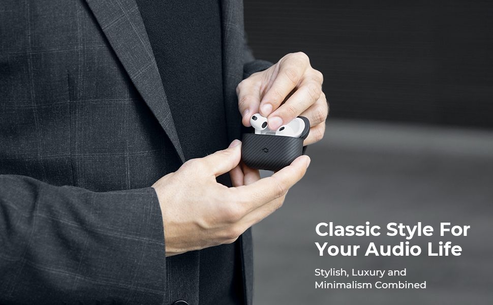 Είναι κατασκευασμένο από σπάνιες και ανθεκτικές ίνες αραμιδίου 600D, αεροδιαστημικής προστασίας, με αντιολισθητική υφή η οποία ενισχύει το κράτημα. Ο σχεδιασμός της θήκης επιλέχτηκε πολύ προσεκτικά και με έμφαση στη λεπτομέρεια, ώστε να διαμορφώσει ένα μοναδικό στυλ στα νέα σας AirPods 3rd Gen.