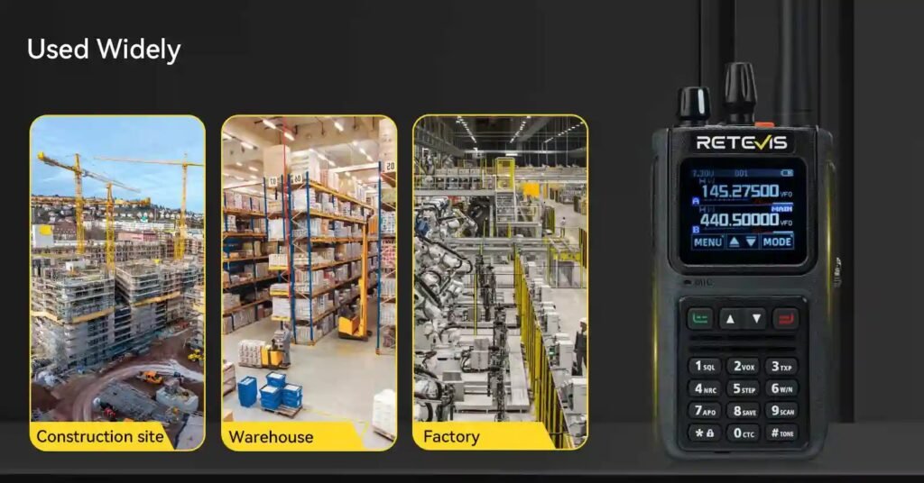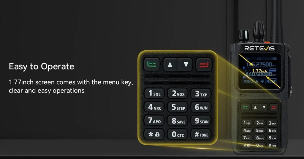 Υποστηρίζει ταυτόχρονα συχνότητες UHF και VHF, διαθέτοντας ευκρινή έγχρωμη οθόνη 1,77” και πλήκτρο μενού για εύκολη και άμεση διαχείριση των λειτουργιών. Προσφέρει μεγάλη εμβέλεια, ομαδική κλήση, ζεύξη με ένα μόνο πλήκτρο και πολλές άλλες χρήσιμες λειτουργίες. Είναι ιδανικός για υπαίθρια κάμπινγκ, εξωτερική διάσωση, εργοτάξια, ασφάλεια και άλλες επαγγελματικές ή προσωπικές ανάγκες.