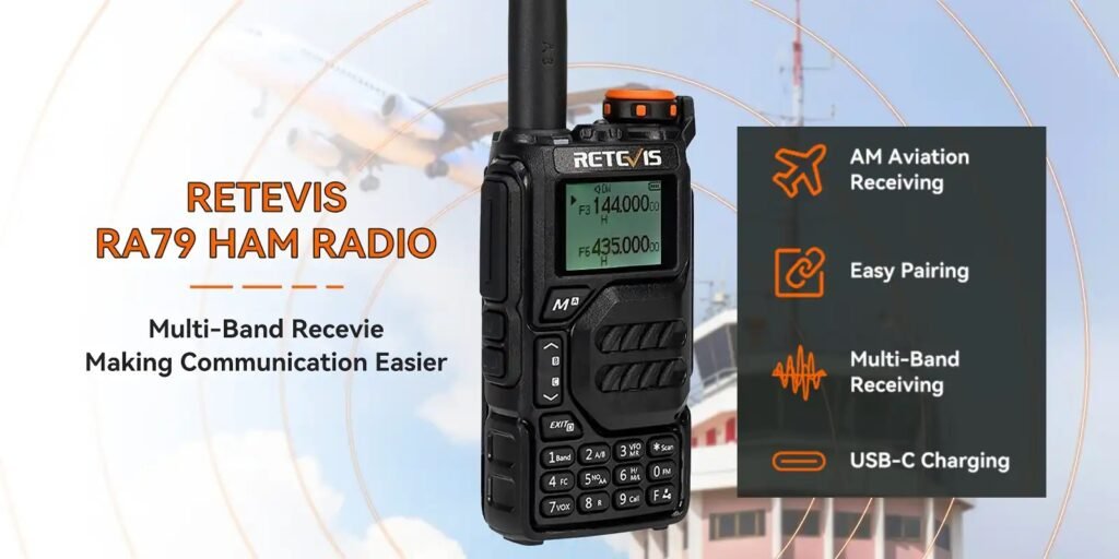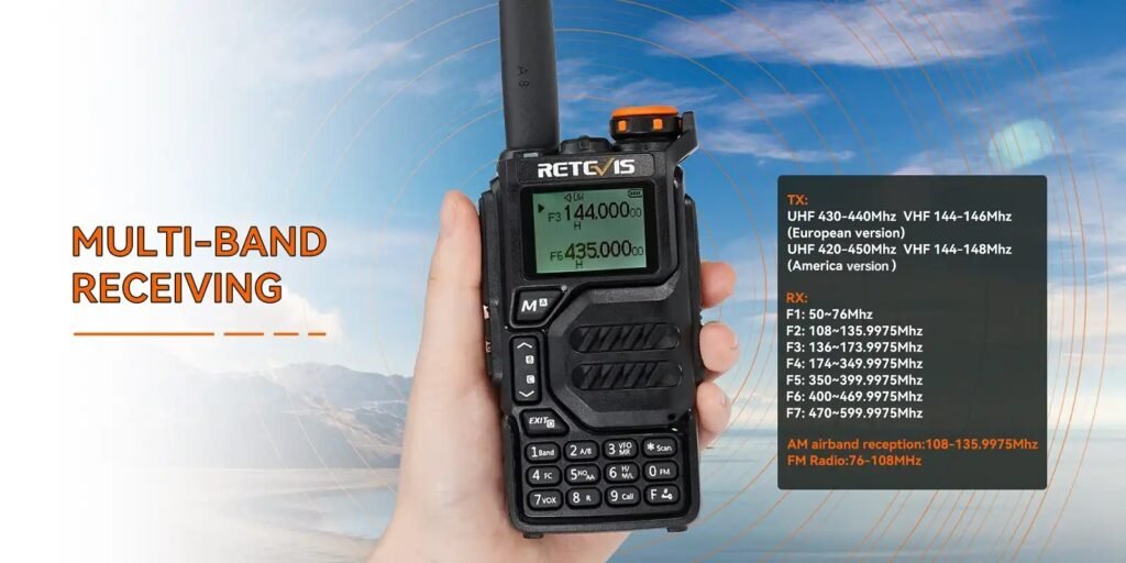 Ο ερασιτεχνικός πομποδέκτης RA79 της Retevis υποστηρίζει λήψη πολλαπλών ζωνών με ισχύ 5W, σχεδιασμένος για ραδιοερασιτέχνες που επιθυμούν ευρεία κάλυψη συχνοτήτων. Υποστηρίζει από 50 έως 600MHz, συμπεριλαμβανομένων των AM αεροπορικών συχνοτήτων, των ζωνών 2m και 70cm. Η υποστήριξη ζεύξης με άλλους πομποδέκτες το καθιστά ιδιαίτερα πρακτικό στην επικοινωνία, ενώ είναι ιδανικό για υπαίθριες δραστηριότητες.
