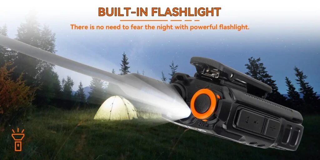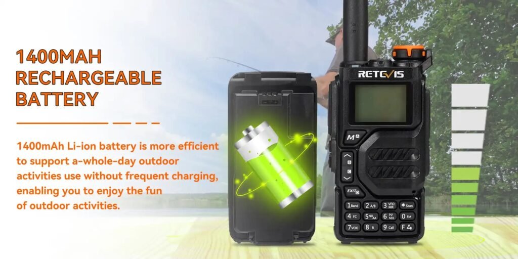 Ο ασύρματος πομποδέκτης είναι εξοπλισμένος με επαναφορτιζόμενη μπαταρία 1.400mAh, η οποία προσφέρει μεγάλη διάρκεια ζωής, επιτρέποντας τη μακροχρόνια χρήση. Επιπλέον, ο ενσωματωμένος ισχυρός φακός σας επιτρέπει να χρησιμοποιείτε τον ασύρματο πομποδέκτη ακόμη και σε ιδιαίτερα σκοτεινές συνθήκες, όπως τη νύχτα.