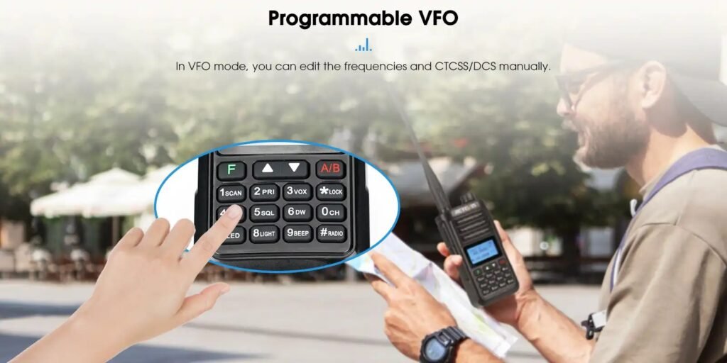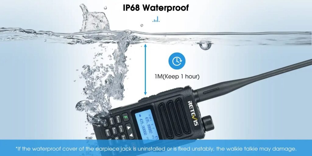 Είναι αδιάβροχος με πιστοποίηση IP68 και διαθέτει προστασία από τη σκόνη 6 επιπέδων και αδιαβροχότητα 8 επιπέδων, επιτρέποντάς του να αντέχει τη βύθιση σε νερό έως 1 μέτρο βάθος για διάστημα έως 1 ώρα και παραμένει πλήρως λειτουργικός σε κάθε περιβάλλον. Επίσης, διαθέτει λειτουργία σύζευξης VFO με ένα πλήκτρο, εσείς απλώς πατήστε παρατεταμένα το πλήκτρο A/B για να σαρώσετε διαφορετικές συχνότητες εντός συγκεκριμένου εύρους και να συνδέσετε γρήγορα δύο πομποδέκτες, να αντιγράψετε και να αποθηκεύσετε τη συχνότητα και το CTCSS/DCS.