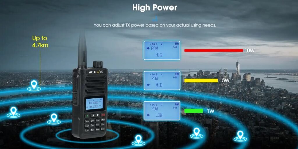 Ο πομποδέκτης RA89 διαθέτει τρία ρυθμιζόμενα επίπεδα ισχύος, 10W/5W/1W και όσο μεγαλύτερη είναι η ισχύς, τόσο μεγαλύτερη είναι η απόσταση επικοινωνίας. Η πραγματική απόσταση χρήσης θα επηρεαστεί από τις ηλεκτρομαγνητικές παρεμβολές, όπως ο καιρός και το έδαφος. Όταν το σήμα σας είναι ασταθές, μπορείτε να ρυθμίσετε την ισχύ για να επιτύχετε κλήσεις μεγάλων αποστάσεων.
