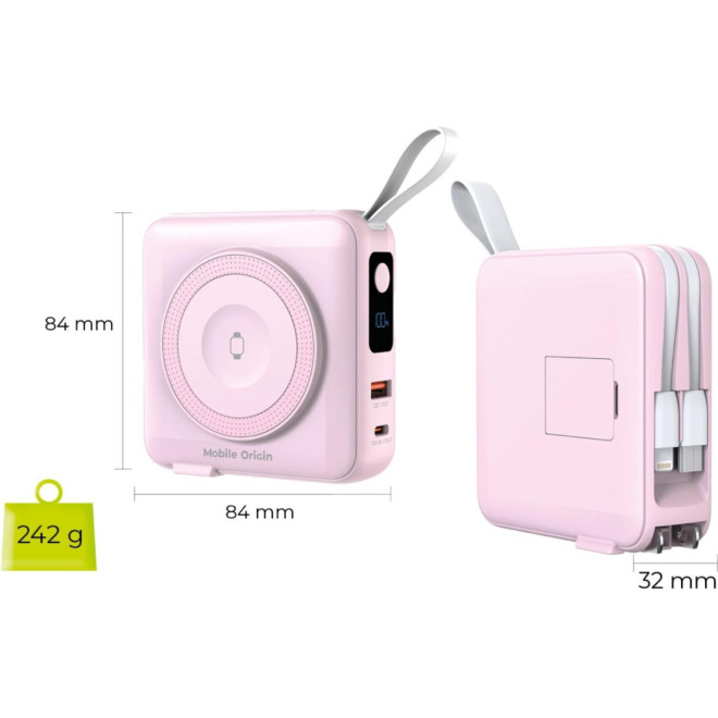 Το πολυλειτουργικό και πρακτικό PowerBank με χωρητικότητα 10.000 mAh της Mobile Origin, διαθέτει ασύρματη φόρτιση MagSafe 15W για iPhone ή 2.5W για Apple Wach, ενσωματωμένα καλώδια εξόδου Type-C, Lightning, και θύρες USB-A 22,5W και Type-C 20W. Προσφέρει γρήγορη φόρτιση και μπορεί να φορτίσει τις αγαπημένες σας συσκευές όπως smartphone, Apple Watch, tablet και φορητούς υπολογιστές.