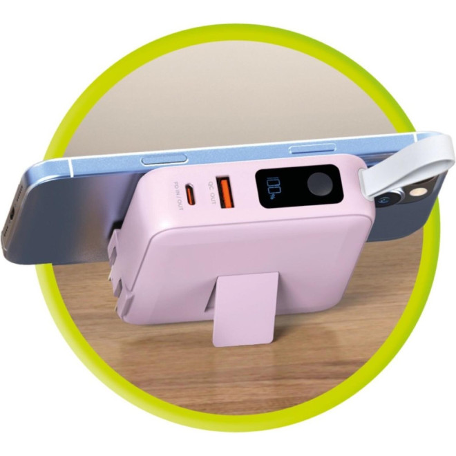 Τέλος, αυτό το πολυλειτουργικό PowerBank δεν προσφέρει μόνο φόρτιση, αλλά είναι επίσης εξοπλισμένο με ένα ενσωματωμένο stand. Απλά τραβήξτε το stand και τοποθετήστε το smartphone σας για να απολαύσετε τη λειτουργία βάσης, εξασφαλίζοντας έτσι εύκολη πρόσβαση και σταθερότητα κατά τη χρήση σας.