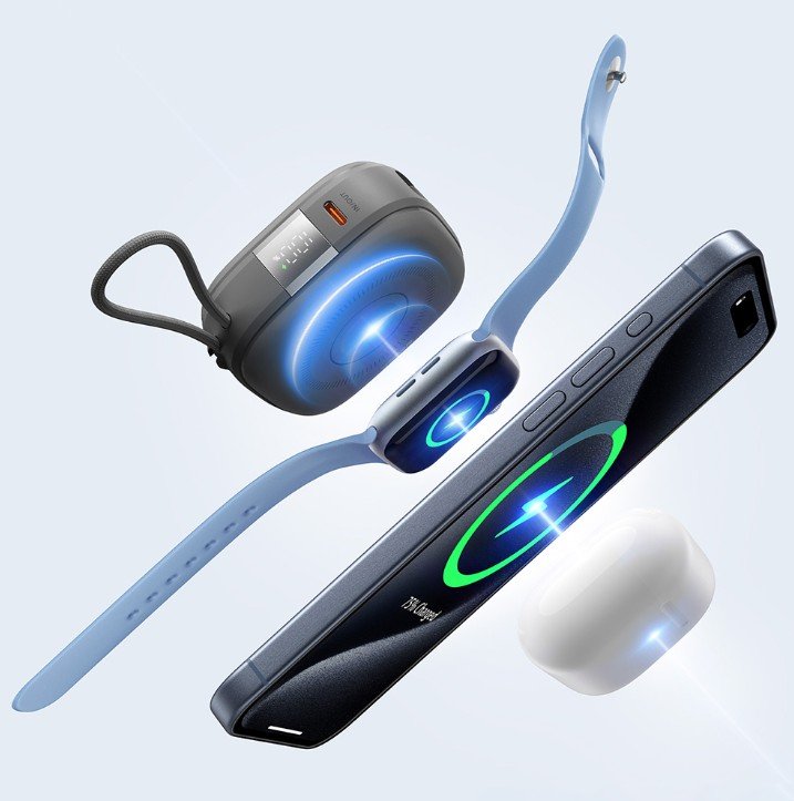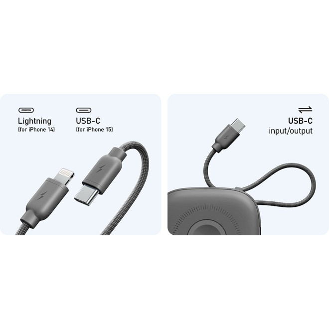 Επιπλέον, προσφέρει σταθερή φόρτιση για Apple Watch και AirPods και είναι ιδανικό για όσους απαιτούν την πρακτικότητα στην καθημερινότητά τους. Το ενσωματωμένο καλώδιο Type-C με υποστήριξη PD 20W, προσφέρει γρήγορη φόρτιση για Android & iOS συσκευές, ώστε να αλλάζετε εύκολα μεταξύ ασύρματης και ενσύρματης φόρτισης.