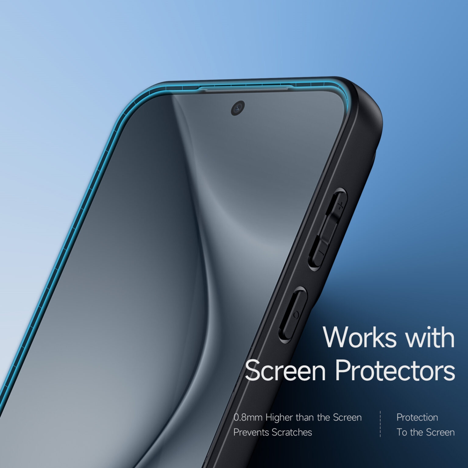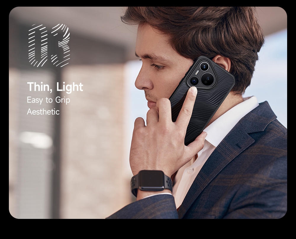 Αγκαλιάζει περιμετρικά τη συσκευή ώστε να προστατεύει το Huawei Pura 70 και διαθέτει ένα υπερυψωμένο χείλος περιμετρικά της οθόνης και της κάμερας, ώστε να προστατεύει την συσκευή σας από τις επίπεδες επιφάνειες. Ταυτόχρονα, η υφή της θήκης στη πλάτη είναι πολύ ευχάριστη και απαλή.