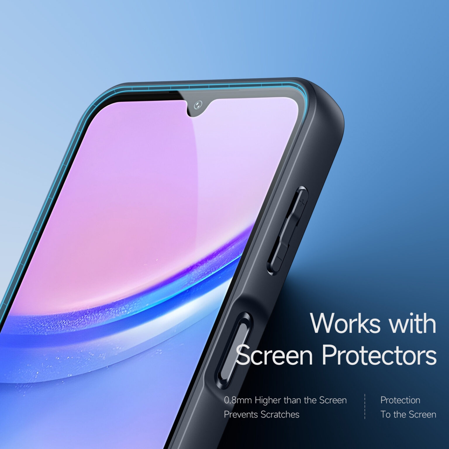 Αγκαλιάζει περιμετρικά τη συσκευή ώστε να προστατεύει το Samsung Galaxy A15 και διαθέτει ένα υπερυψωμένο χείλος περιμετρικά της οθόνης και της κάμερας, ώστε να προστατεύει την συσκευή σας από τις επίπεδες επιφάνειες. Ταυτόχρονα, η υφή της θήκης στη πλάτη είναι πολύ ευχάριστη και απαλή.