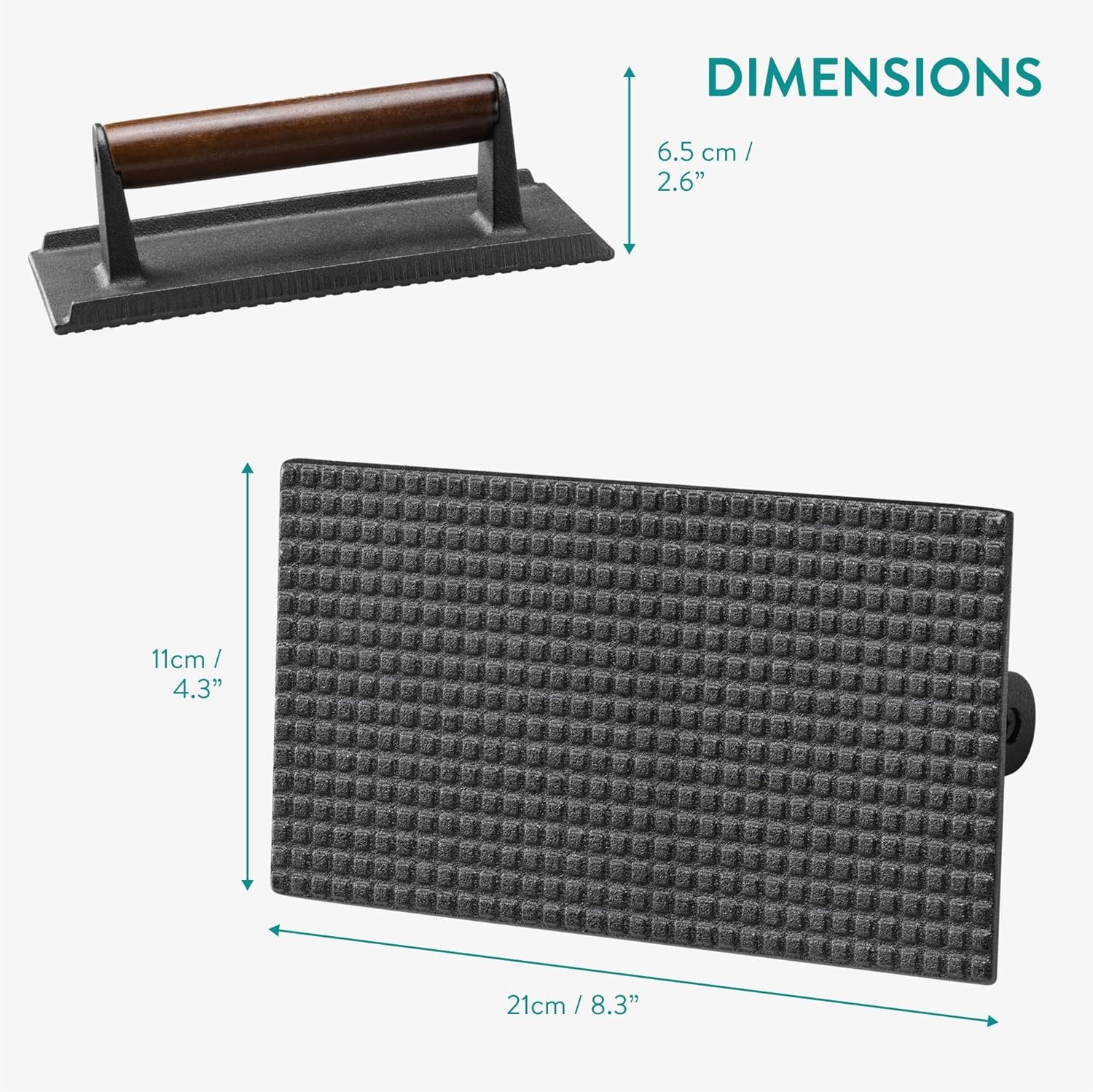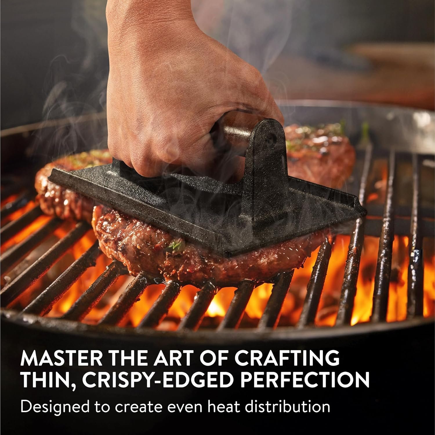 Αναβαθμίστε την εμπειρία της μαγειρικής σας με αυτή την ορθογώνια πρέσα μπέργκερ! Είναι σχεδιασμένη για τους λάτρεις της πλούσιας γεύσης αλλά και του ποιοτικού φαγητού. Αυτή η στιβαρή πρέσα είναι κατάλληλη για να φτιάξετε τέλεια smash burgers, μπριζόλες και τραγανό μπέικον!