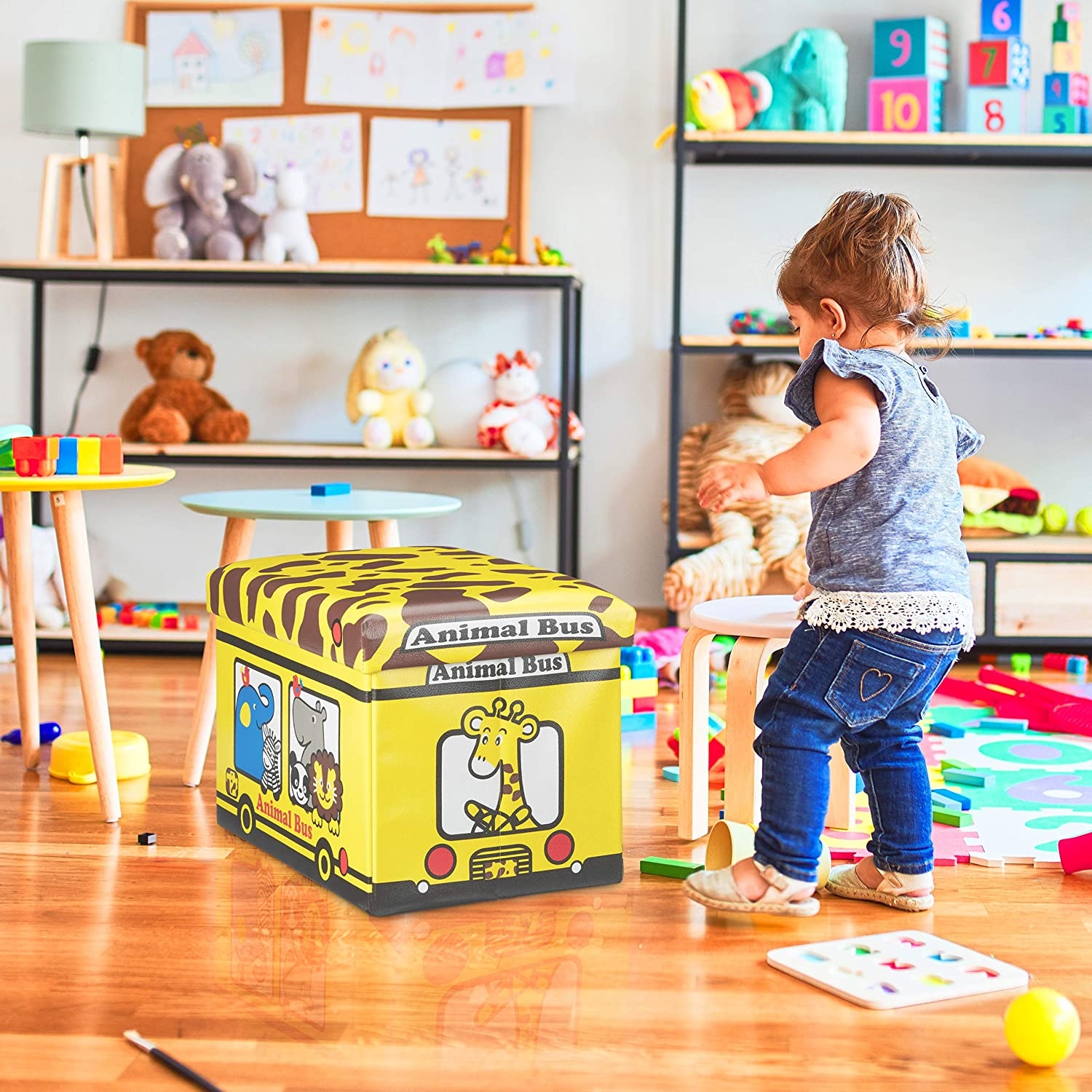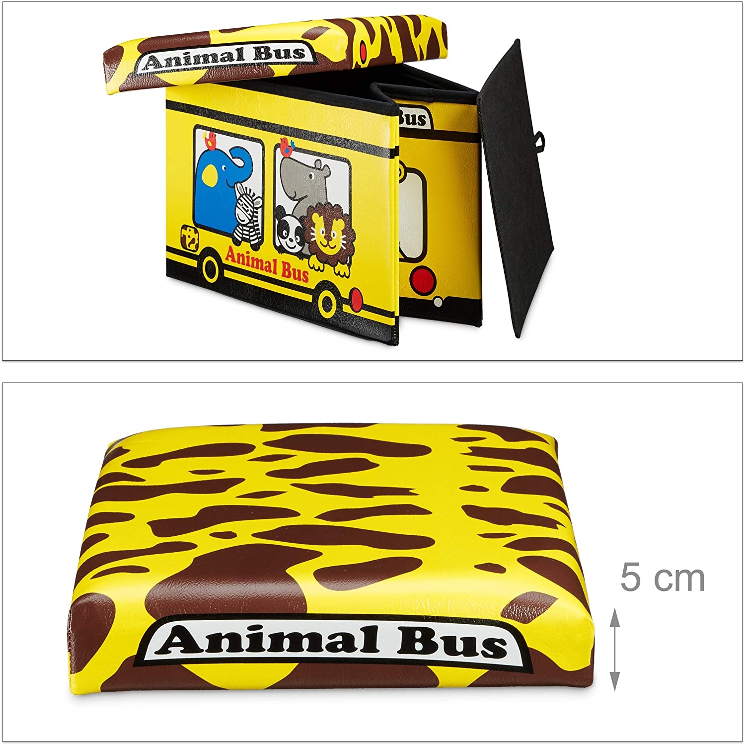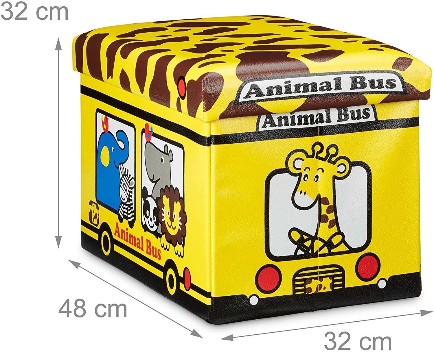Οργανώστε γρήγορα το δωμάτιο των παιδιών σας, με αυτό το πρακτικό και χαριτωμένο 2 σε 1 κουτί αποθήκευσης παιχνιδιών και σκαμπό της Relaxdays! Έρχεται σε ένα διασκεδαστικό σχέδιο Animal Bus και αποτελεί ένα όμορφο διακοσμητικό για το παιδικό δωμάτιο που θα τραβάει όλα τα βλέμματα!