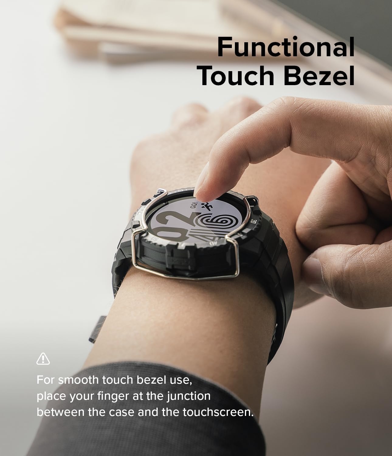 Το σετ Fusion X Guard της Ringke αντικατοπτρίζει την όμορφη αισθητική με τη λειτουργικότητα. Η αντικραδασμική, στιβαρή θήκη με το Bezel, σε συνδυασμό με τις λεπτομερείς εγκοπές, το λουράκι και το προστατευτικό σύρμα από ανοξείδωτο ατσάλι, αποτελούν μια πλήρη ασπίδα προστασίας για το αγαπημένο σας Samsung Galaxy Watch 5 / 4 44mm.