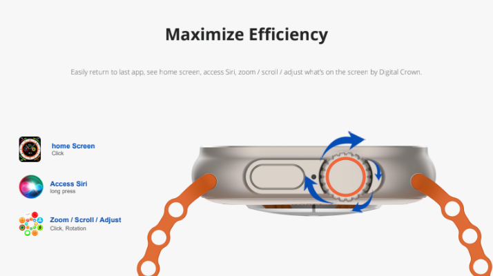 Επιστρέψτε εύκολα στην τελευταία εφαρμογή, δείτε την αρχική οθόνη, αποκτήστε πρόσβαση στο Siri, κάντε ζουμ, κύλιση και προσαρμόστε ό,τι εμφανίζεται στην οθόνη με το Digital Crown. Παρακολουθήστε τα καθημερινά δεδομένα της φυσικής σας κατάστασης καθώς ασκείστε, στο περπάτημα, τρέξιμο, ποδηλασία, μπάσκετ, γιόγκα, πεζοπορία και πολλά άλλα!