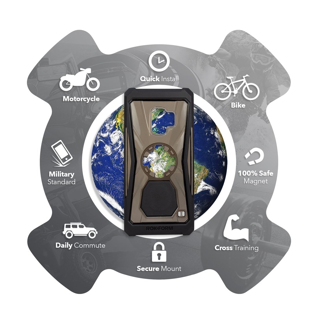 Με πολλές δυνατότητες, η θήκη για το Samsung Galaxy S9 από την Rokform, προσφέρει κάτι παραπάνω από απλή προστασία στη συσκευή σας. Η συσκευασία περιλαμβάνει μια μεταλλική πλάκα για μαγνητική βάση στο αυτοκίνητο, στο ποδήλατο ή στην μοτοσυκλέτα σας.