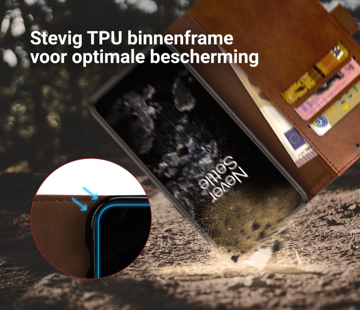 Διαθέτει εσωτερικά 3 υποδοχές για κάρτες και μία για χαρτονομίσματα. Οι εξελιγμένες θήκες στο εσωτερικό της θήκης παρέχουν ασφαλή αποθήκευση στις πιστωτικές σας κάρτες και τους λογαριασμούς σας. Η όμορφη διπλή ραφή περιμετρικά παρέχει ένα κομψό φινίρισμα και κάνει τη θήκη-πορτοφόλι μία από τις καλύτερες επιλογές.