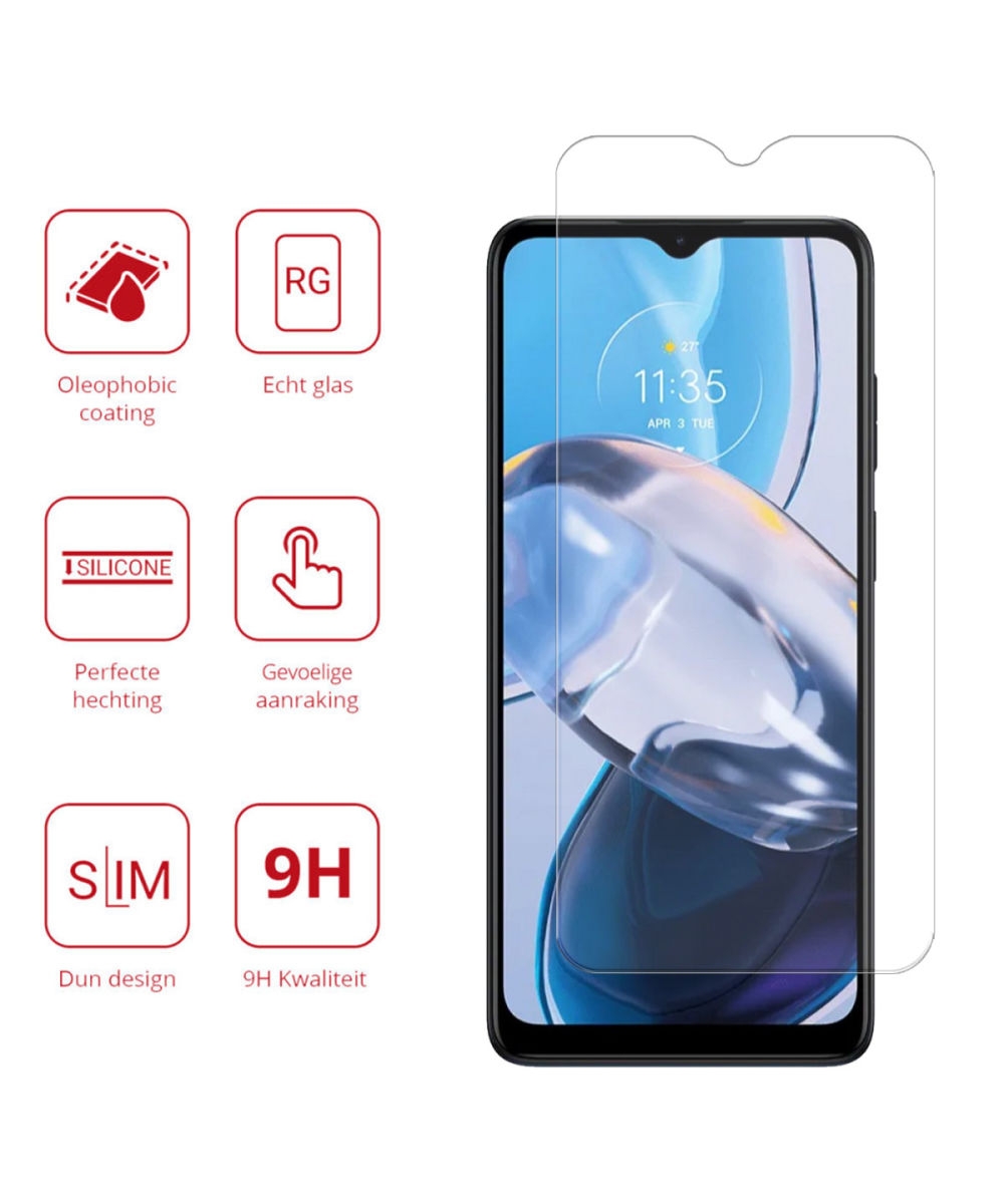 Είναι εφοδιασμένο με μία ελαιοφοβική επίστρωση, αυτή η επίστρωση είναι ανθεκτική στο λάδι και κατά των δακτυλικών αποτυπωμάτων. Κάνει το γυαλί εύκολο να καθαριστεί και μειώνει την πρόσφυση της σκόνης και της βρωμιάς. Ο συνδυασμός όλων αυτών των υλικών διασφαλίζει ότι μπορείτε να χρησιμοποιήσετε το Motorola Moto E22 / E22i σας απρόσκοπτα, ενώ είναι προστατευμένο.