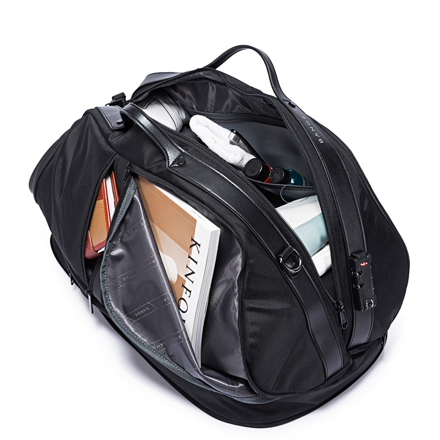 Διαθέτει πολλαπλές εσωτερικές τσέπες με φερμουάρ για την ασφαλή αποθήκευση των προσωπικών σας αντικειμένων. Υπάρχει και μία πρακτική θήκη για παπούτσια, ειδική αδιάβροχη θήκη για τις βρεγμένες πετσέτες ή τα προϊόντα περιποίησης. Επιπλέον, διαθέτει δύο πλαϊνές εξωτερικές τσέπες για γρήγορη πρόσβαση στα απαραίτητα αντικείμενά σας.