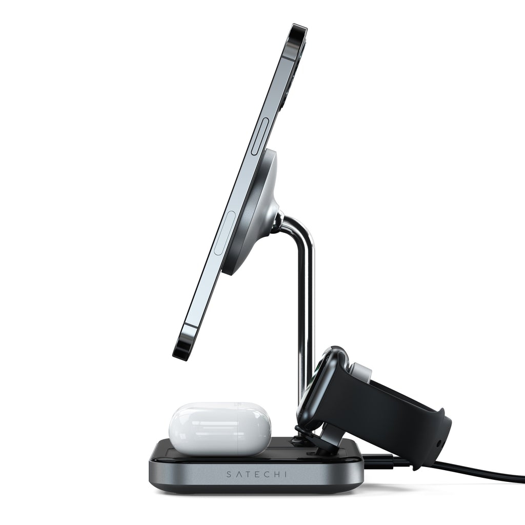 Ιδανικό για να απαντάτε σε κλήσεις FaceTime ή να απαντάτε σε μηνύματα κατά τη φόρτιση. Με κατασκευή από ανοξείδωτο ατσάλι και αλουμίνιο, η μαγνητική βάση ασύρματης φόρτισης 3 σε 1 προσθέτει μια μοντέρνα πινελιά στο κομοδίνο ή τον χώρο εργασίας σας.