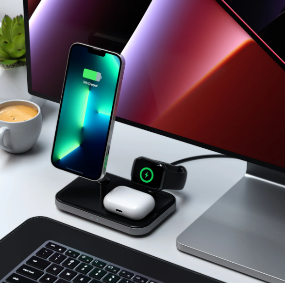 Διατηρήστε όλες τις συσκευές σας φορτισμένες και οργανωμένες σε ένα μέρος με τη μαγνητική ασύρματη βάση φόρτισης της SΛTECHI 3-σε-1. Διαθέτει υποστήριξη ασύρματης φόρτισης για όλες τις Apple συσκευές σας.