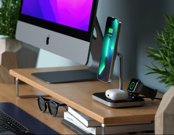 Με γρήγορη φόρτιση των iPhone 13 (7,5W), Apple Watch (2,5W) και AirPods Pro (5W) ταυτόχρονα, ώστε να φορτίζονται και να είναι έτοιμα όποτε τα θέλετε. Εξοπλισμένο με εύχρηστη μαγνητική σύνδεση για να διατηρεί το iPhone σας σε τέλεια θέα και λειτουργεί είτε σε κατακόρυφη είτε σε οριζόντια θέση.