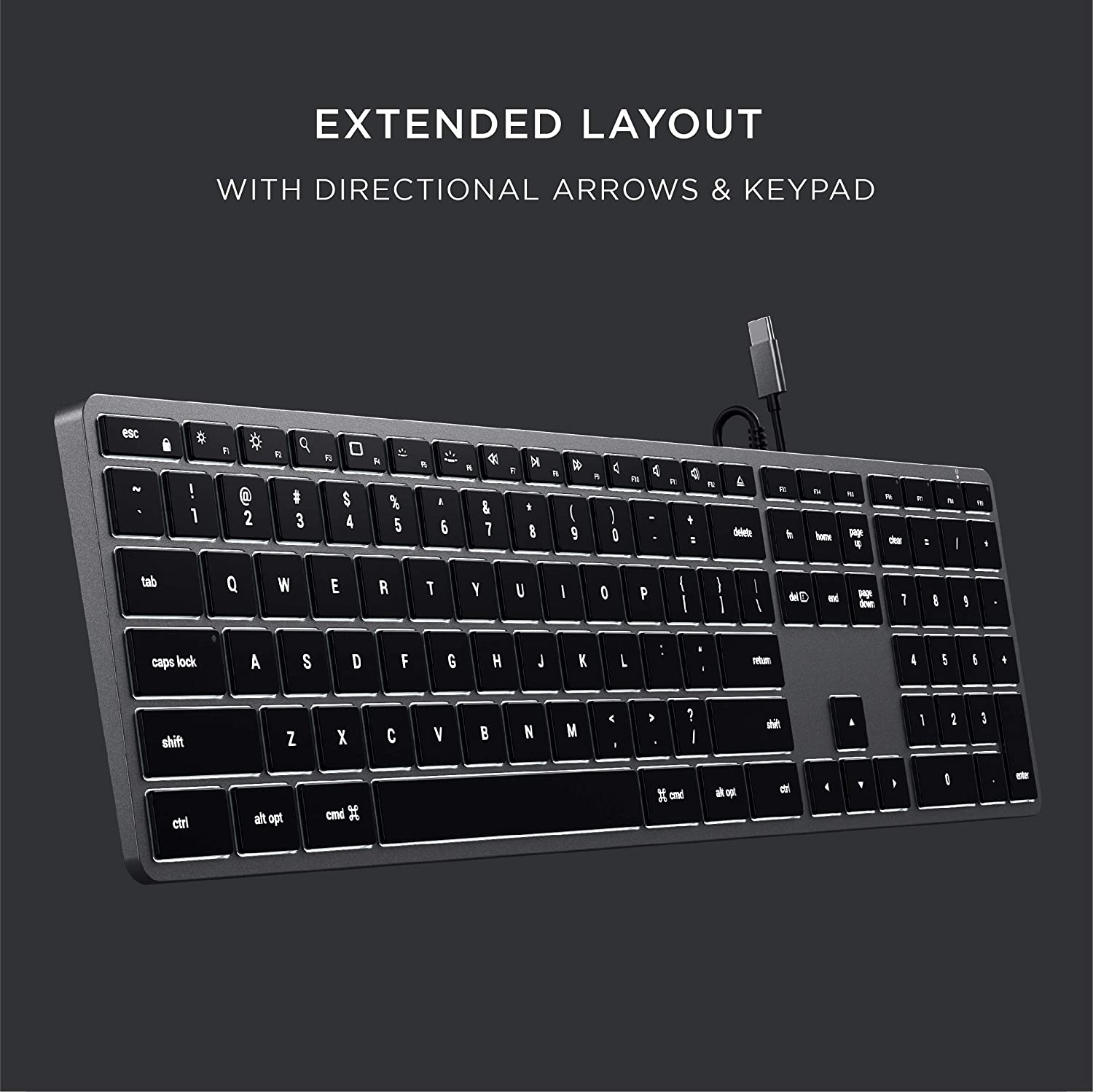 Περιλαμβάνει όλες τις δυνατότητες που χρειάζεστε, όπως εκτεταμένη διάταξη πληκτρολογίου με αριθμητικό πληκτρολόγιο, ενσύρματη σύνδεση Type-C, ρυθμιζόμενα πλήκτρα με οπίσθιο φωτισμό και πλήκτρα λειτουργιών MacOS, όλα με κομψή φινίρισμα αλουμινίου.