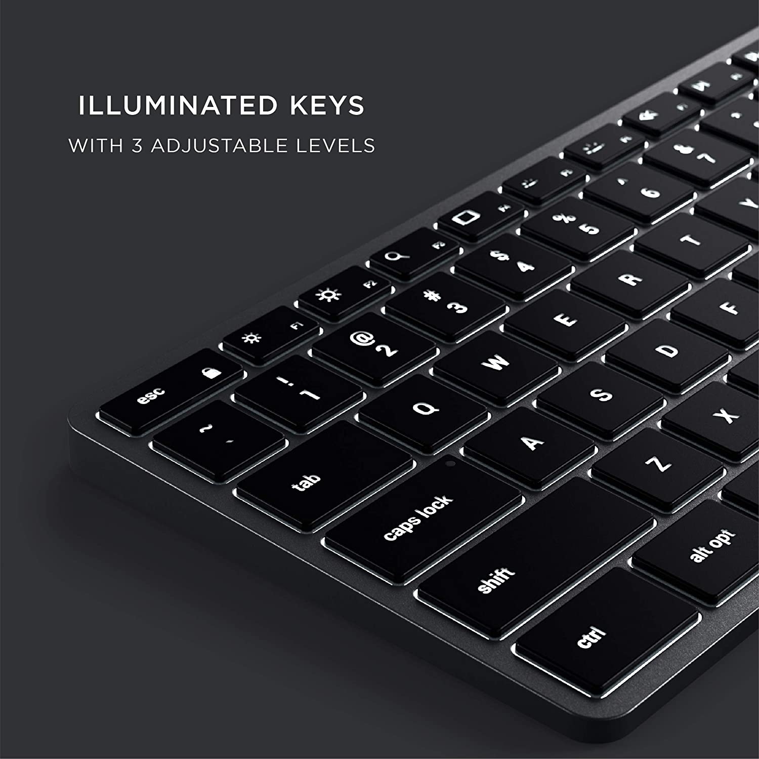 Το ενσύρματο πληκτρολόγιο Slim W3 περιλαμβάνει τρία επίπεδα φωτεινότητας για τέλεια ποσότητα φωτισμού σε οποιαδήποτε ρύθμιση, καθώς και πλήκτρα συνάρτησης macOS για εύκολη ρύθμιση της φωτεινότητας, της έντασης, της παύσης, της αναπαραγωγής και άλλων στη συνδεδεμένη συσκευή σας.