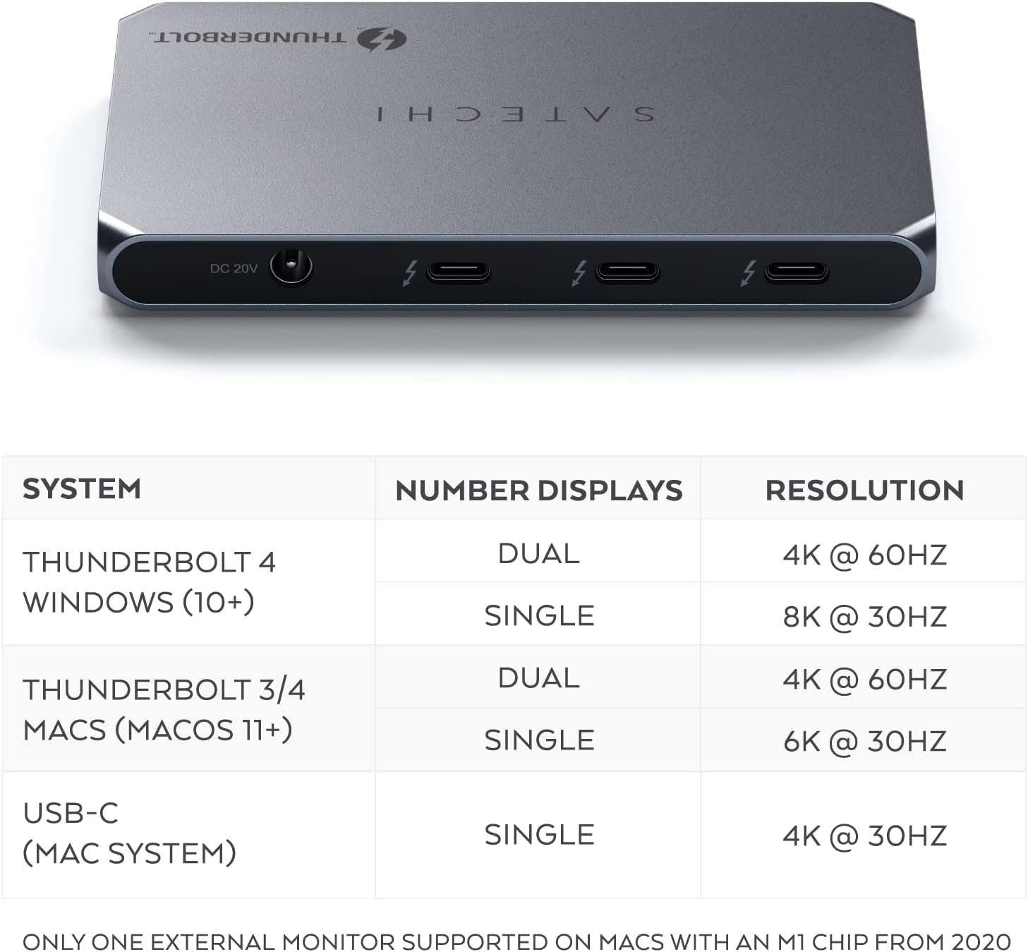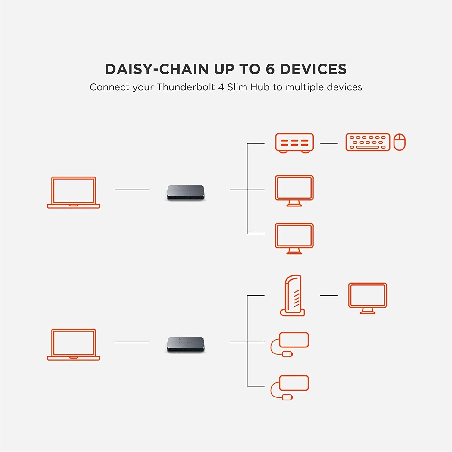 Σημείωση: Σχεδιασμένο για υπολογιστές που είναι συμβατοί με Thunderbolt 4 και για Mac που είναι συμβατοί με Thunderbolt 4/3 και χρησιμοποιούν MacOS 11 και νεότερες εκδόσεις. Το Thunderbolt 4 Slim Hub υποστηρίζει οθόνες 2 x 4K στα 60Hz, ή μία οθόνη 8K στα 30Hz ή 1 x 6K σε M1 Mac. Δεν είναι συμβατά τα συστήματα Windows Thunderbolt 3.