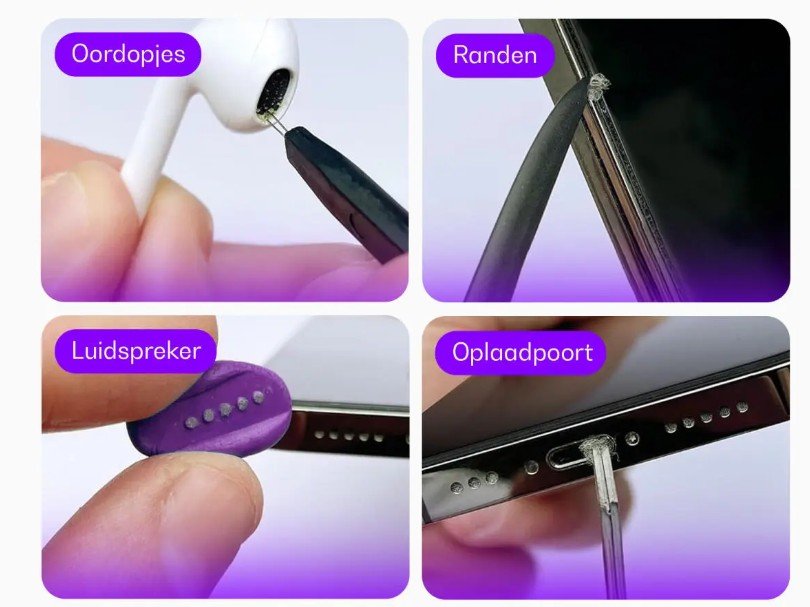 Το κιτ περιλαμβάνει επίσης βούρτσες και τσιμπιδάκι, που φτάνουν παντού, στα ηχεία, τις θύρες φόρτισης, τα κουμπιά, φακούς ακόμα και στις πιο στενές γωνίες. Τέλος, είναι επίσης κατάλληλο για την σκόνη που παγιδεύεται γύρω από το προστατευτικό της οθόνης σας.