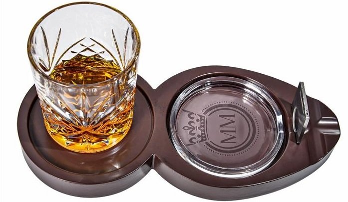 Είναι ένα πρακτικό αλλά και όμορφο αισθητικά σετ, το οποίο διαθέτει έναν υπέροχο σχεδιασμό, με ειδικά διαμορφωμένες θέσεις για το ποτήρι του ουίσκι και τη θήκη του πούρου, διατηρώντας τα πάντα τακτοποιημένα.