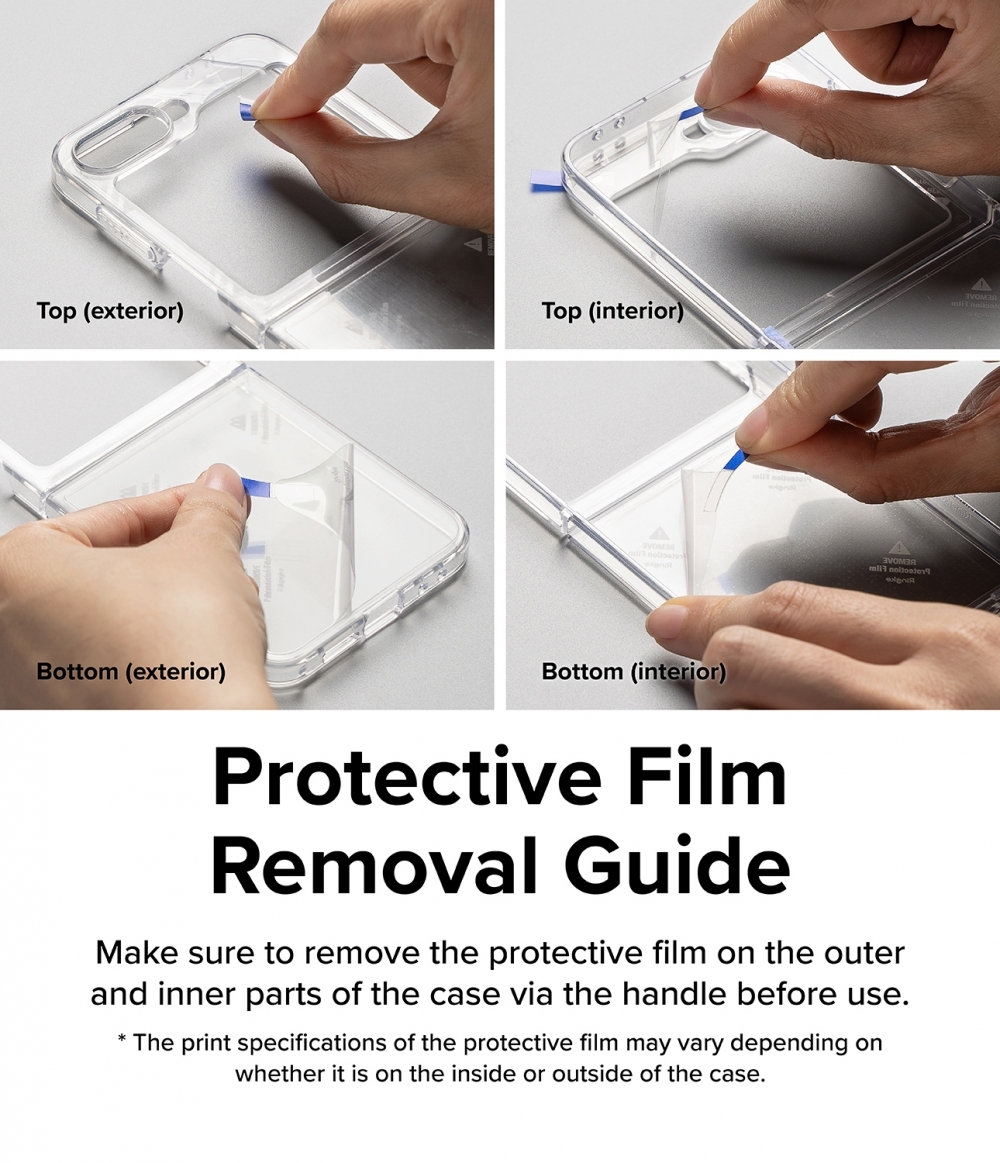 Σημείωση: Πριν την χρήση αφαιρέστε τα προστατευτικά φίλμ που βρίσκονται και στις δύο πλευρές της θήκης. Δεν περιλαμβάνεται λουράκι. Οι ανυψωμένες άκρες για την προστασία της κάμερας μπορεί να επηρεάσουν τις φωτογραφίες ή τα βίντεο όταν χρησιμοποιείτε το φλας της κάμερας. Για να αποφύγετε αυτό το φαινόμενο, συνιστάται η χρήση του Ringke Camera Lens Frame Glass (το οποίο δεν περιλαμβάνεται).