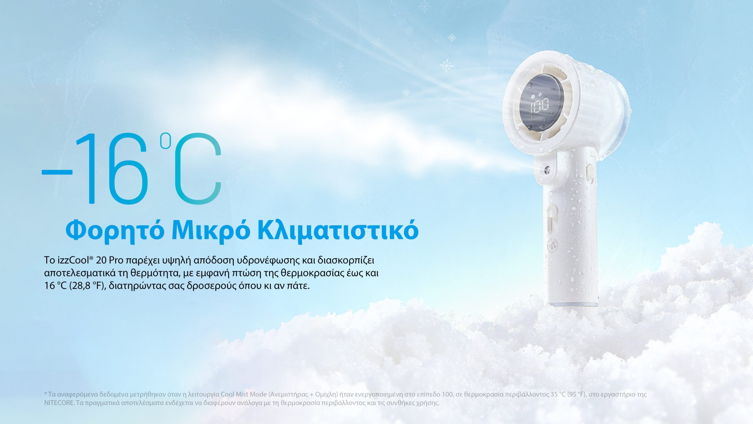 Ο ανεμιστήρας izzCool 20 Pro της Nitecore είναι ένας ατομικός, επιτραπέζιος ανεμιστήρας με υγραντήρα και λουράκι χειρός. Είναι ένα φορητό κλιματιστικό, το οποίο μπορείτε να το μεταφέρετε παντού μαζί σας! Σας προσφέρει υψηλή απόδοση υδρονέφωσης και μπορεί να μειώσει τη θερμοκρασία έως και 16°C, ώστε να παραμένετε πάντα δροσεροί!