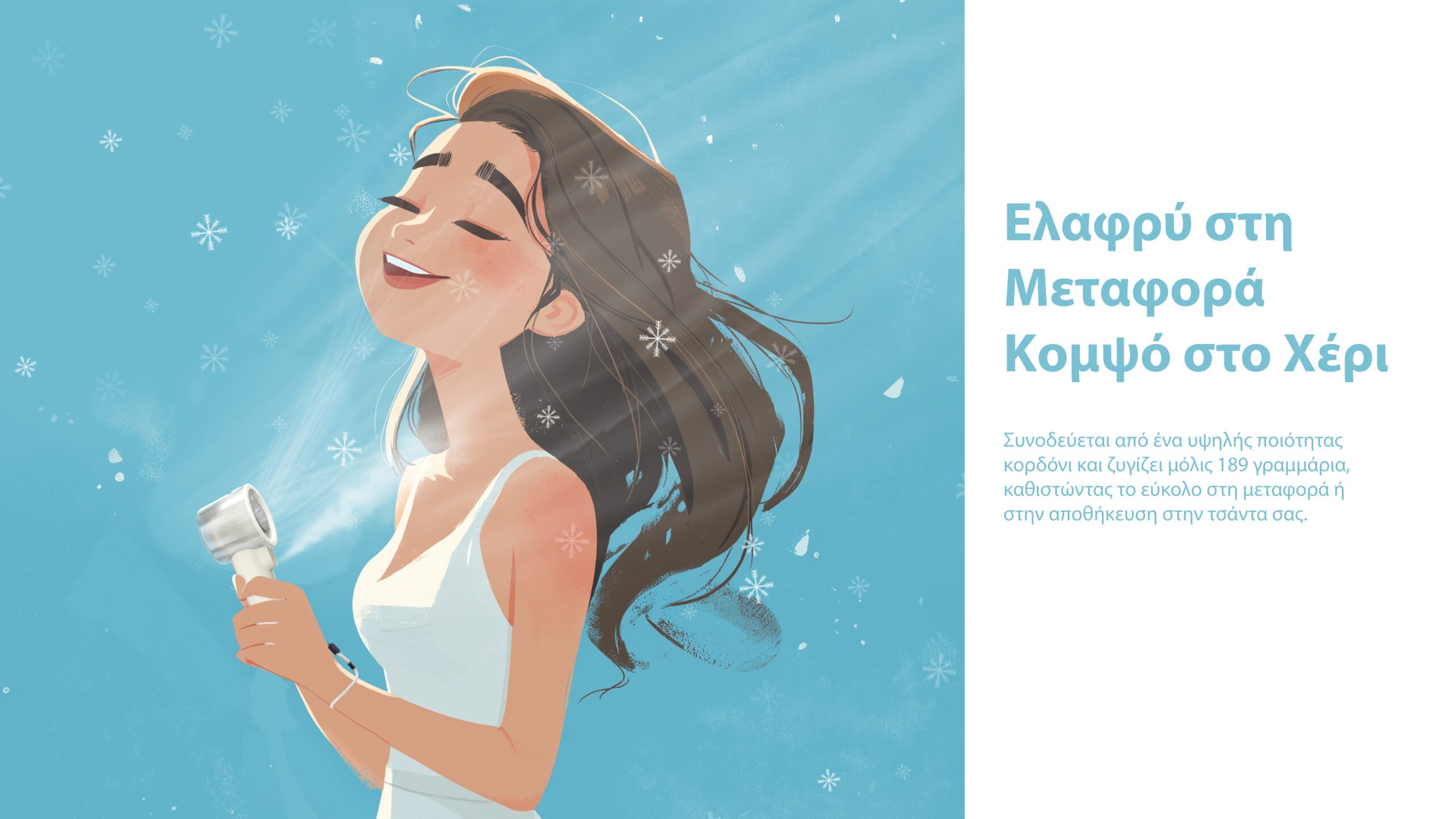 Ο αδιαβάθμητος έλεγχος ταχύτητας, η LED οθόνη, η οποία σας δείχνει σε πραγματικό χρόνο πολλές ενδείξεις και οι λειτουργίες ψύξης, ανεμιστήρα και ομίχλης θα σας προσφέρουν μία μοναδική εμπειρία χρήσης! Είναι εξαιρετικά φορητός, καθώς ζυγίζει μόλις 189 γραμμάρια και είναι ο ιδανικός σύντροφος για ταξίδια, πικνίκ, φεστιβάλ, πεζοπορίες ή απλά για το γραφείο και το σπίτι σας.