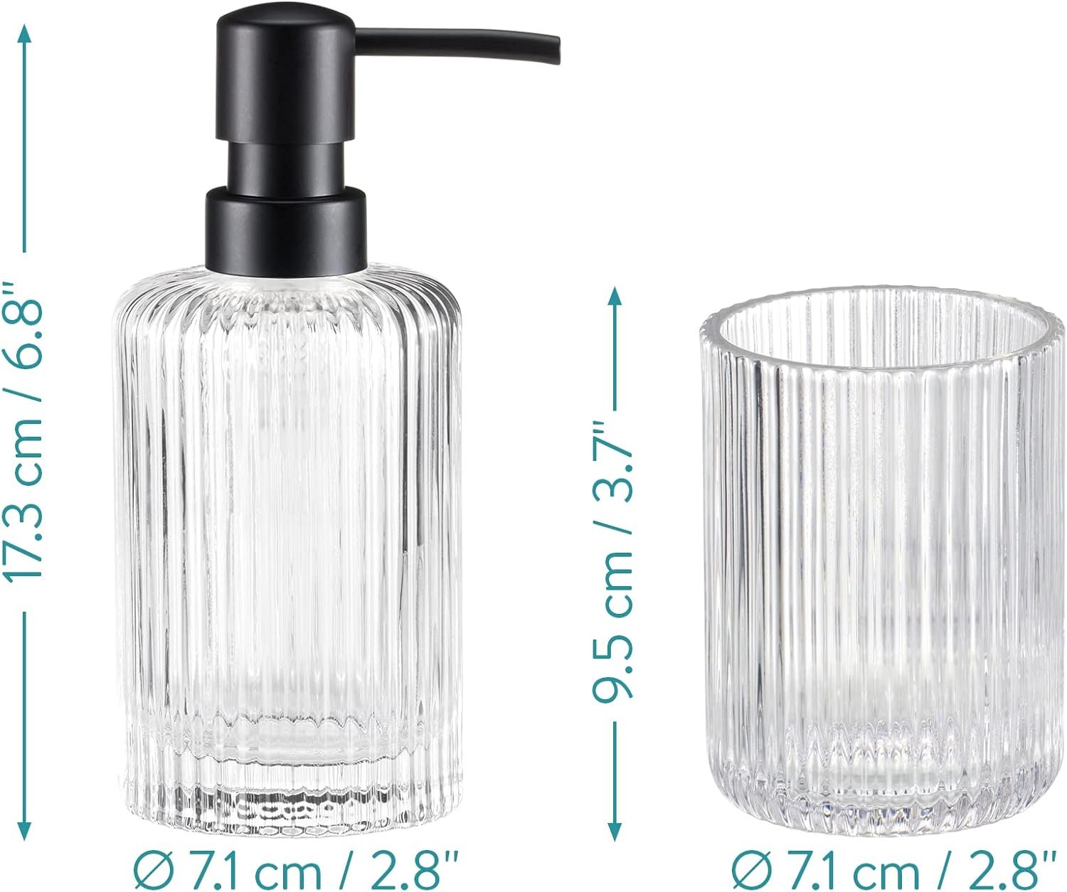 Οι εντυπωσιακές διάφανες ραβδώσεις προσθέτουν μία νότα μοντέρνου στυλ, κάνοντάς το ιδανικό για κάθε μπάνιο. Το σετ συνδυάζει την όμορφη αισθητική με την πρακτικότητα, ενώ η επιφάνεια τους καθαρίζεται εύκολα, είναι εξαιρετικά ανθεκτική στο νερό και στο πέρασμα του χρόνου, αποφεύγοντας τη φθορά ή τη συντήρησή τους.
