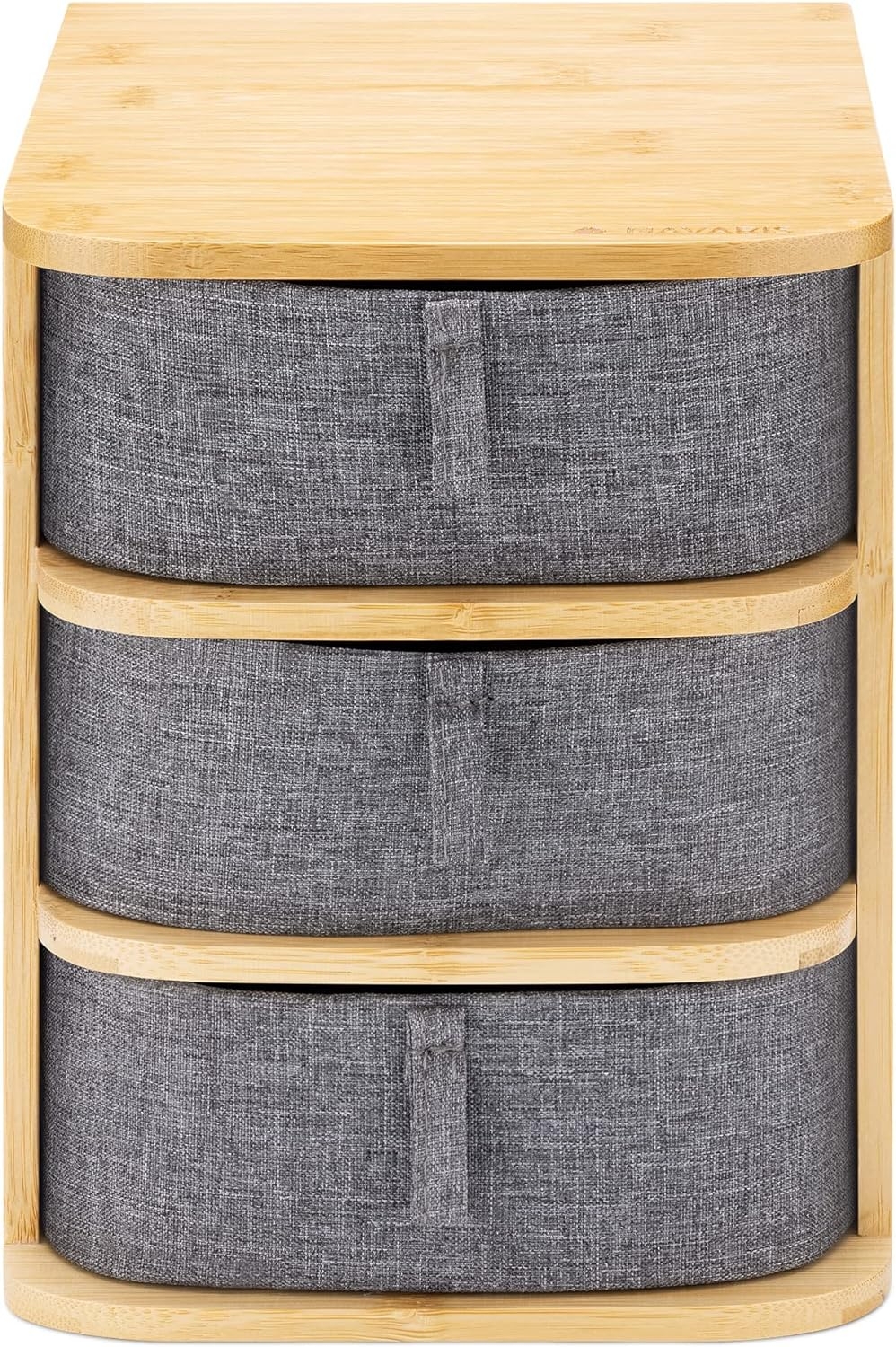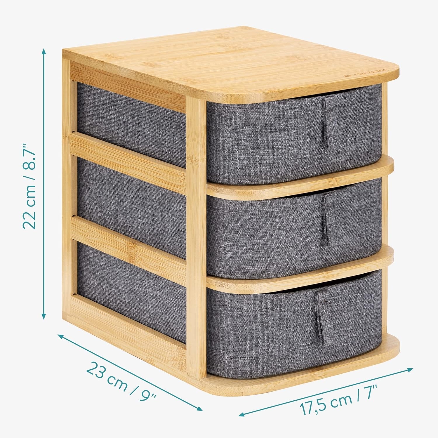 Navaris 3-Tier Bamboo Make-Up Organizer - Διοργανωτής / Κουτί Αποθήκευσης Καλλυντικών με 3 Συρτάρια από Μπαμπού - 23 x 17.5 x 22cm - Grey (54184.03)