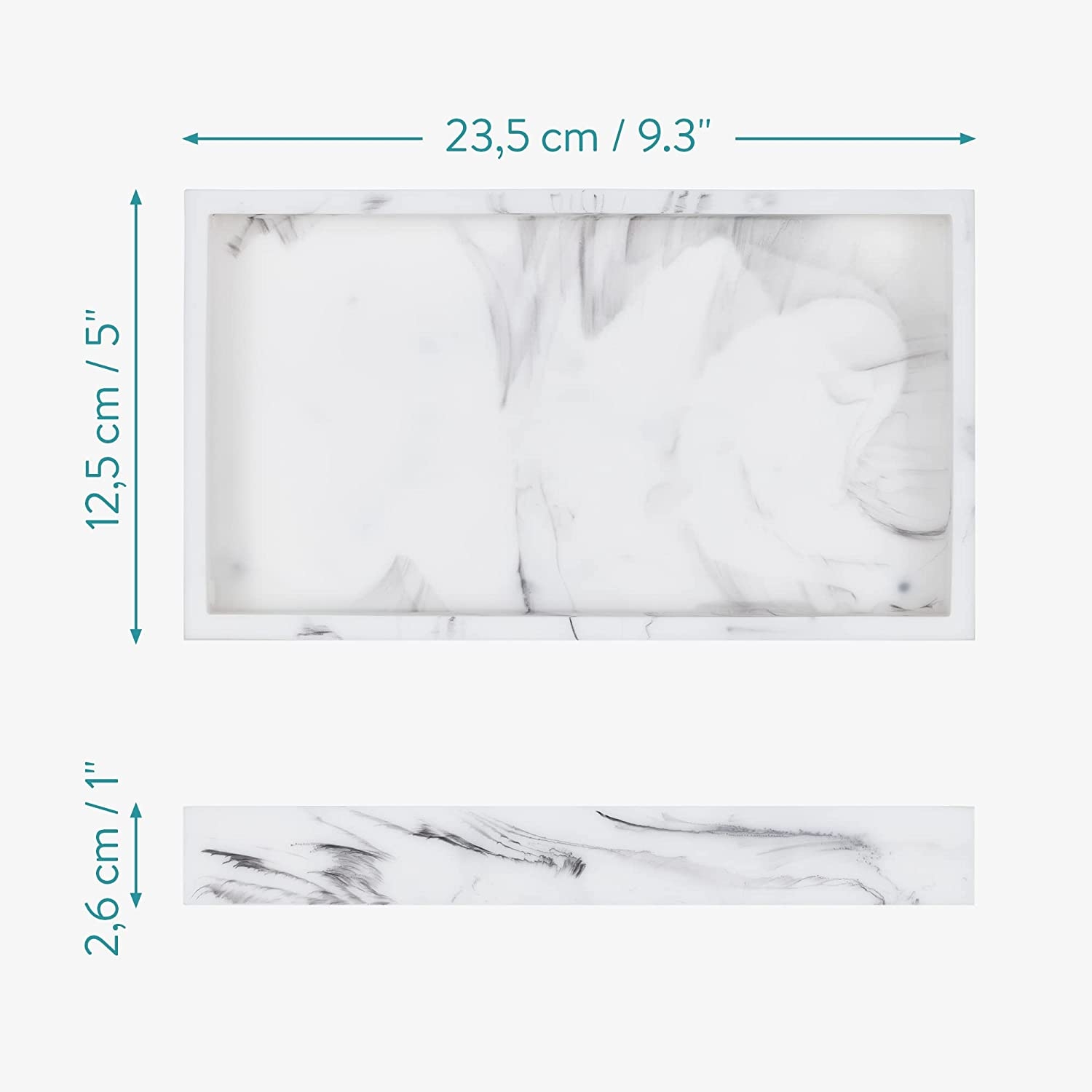 Βάλτε σε τάξη τα αντικείμενα στο μπάνιο, γραφείο, είσοδο ή το μπουντουάρ σας και ταυτόχρονα διακοσμήστε το σπίτι σας. Το μαρμάρινο λευκό σχέδιο, προσθέτει μία όμορφη αισθητική σε οποιοδήποτε χώρο του σπιτιού σας, καθώς είναι ιδιαίτερα κομψή.