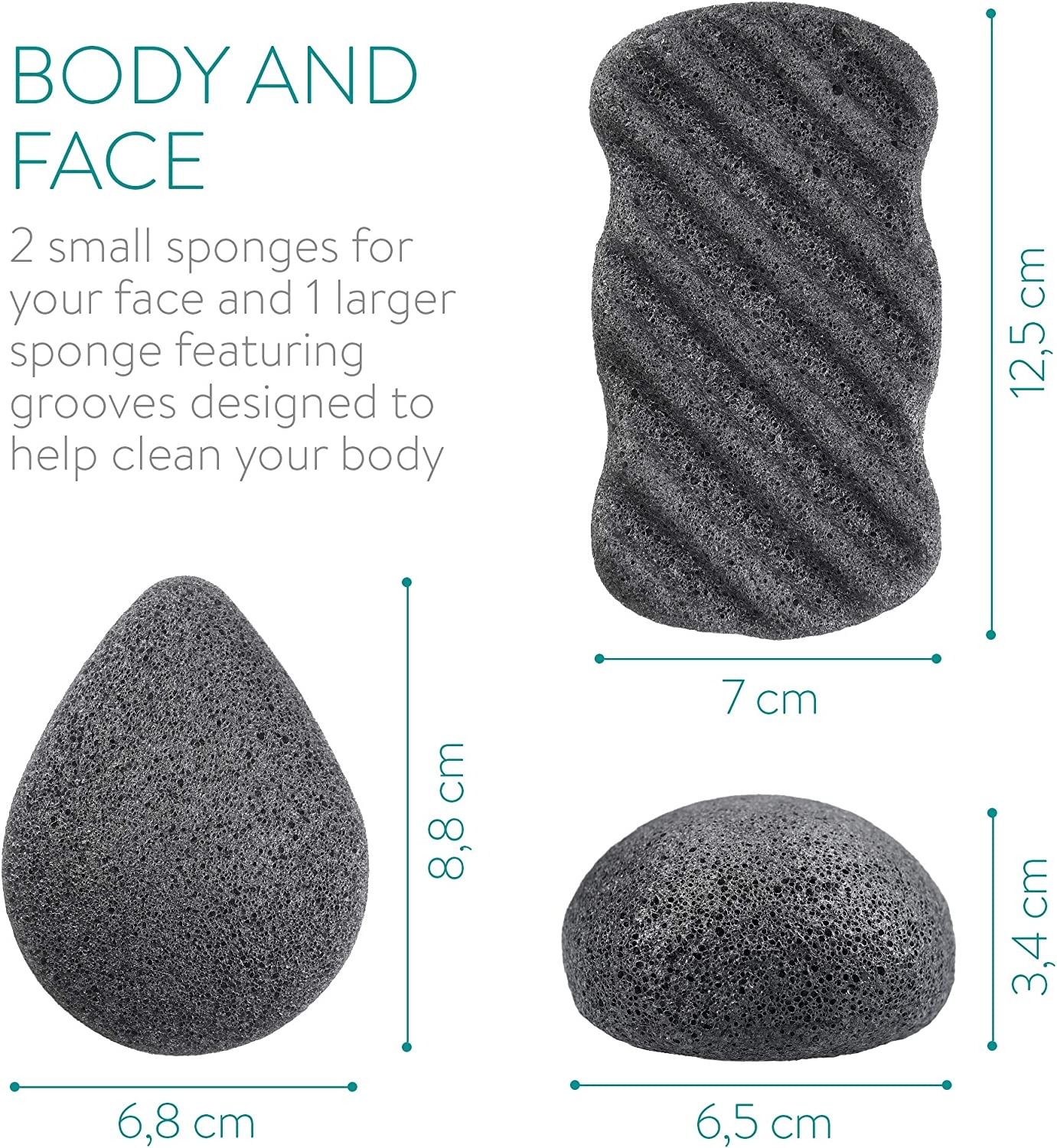 Επιπλέον, ο ενεργός άνθρακας από μπαμπού είναι ιδανικός για να απομακρύνει τις ακαθαρσίες, κάνοντας ένα βαθύ καθαρισμό. Αυτό το υπέροχο σετ αποτελείται από δύο μικρά σφουγγάρια για το πρόσωπο και ένα μεγαλύτερο για το σώμα.