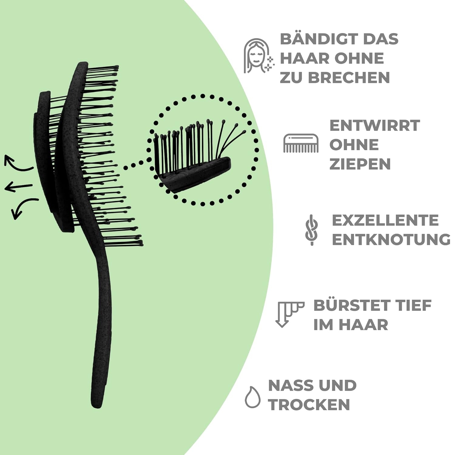 Είναι μία βιολογική βούρτσα μαλλιών κατασκευασμένη από βιοπλαστικό, συλλεγμένο στη θάλασσα, από στάχυ και από ανακυκλώσιμα καλαμάκια, έτσι η βούρτσα δεν έχει λαστιχένια επίστρωση, είναι 100% vegan και δεν έχει καθόλου τρίχες από ζώα, επομένως εκπέμπει λιγότερο διοξείδιο του άνθρακα κατά την παραγωγή της.