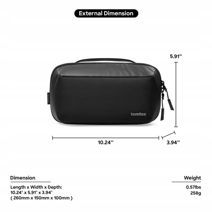 Αυτή η τσάντα organizer συνδυάζει την χωρητικότητα με την πρακτικότητα, την κομψότητα και υψηλή ποιότητα, καθιστώντας την τέλεια επιλογή για την οργάνωση των καθημερινών σας αξεσουάρ και ταξιδιωτικών αναγκών. Διατηρήστε τα αντικείμενά σας οργανωμένα και εύκολα προσβάσιμα με την τσάντα της Tomtoc!