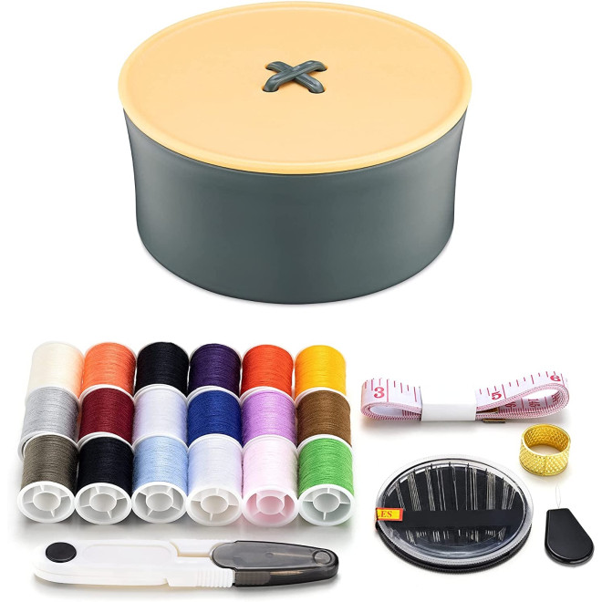 Το σετ περιλαμβάνει: 1 x θήκη ραψίματος, 30 x σετ βελόνες, 18 x κλωστές, 1 x ταινία μέτρησης, 1 x ψαλίδι, 1 x δαχτυλήθρα και 1 x νήμα.