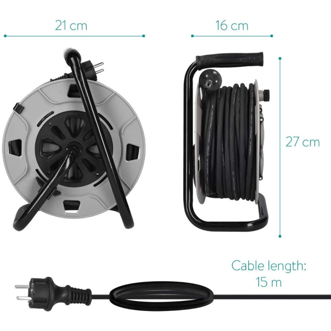 Navaris Cable Reel - Μπαλαντέζα με 4 Υποδοχές Schuko - 15m - Black (47375.15)