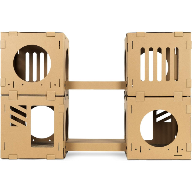 Δημιουργήστε τον λαβύρινθο των ονείρων της γάτας σας, με αυτό το υπέροχο DYI παιχνίδι από χαρτόνι γκοφρέ, με 4 κύβους, 2 ονυχοδρόμια και 2 γέφυρες της Navaris, το οποίο θα προσφέρει ατελείωτες ώρες παιχνιδιού, ανακάλυψης αλλά και ξεκούρασης για την αγαπημένη σας γάτα!