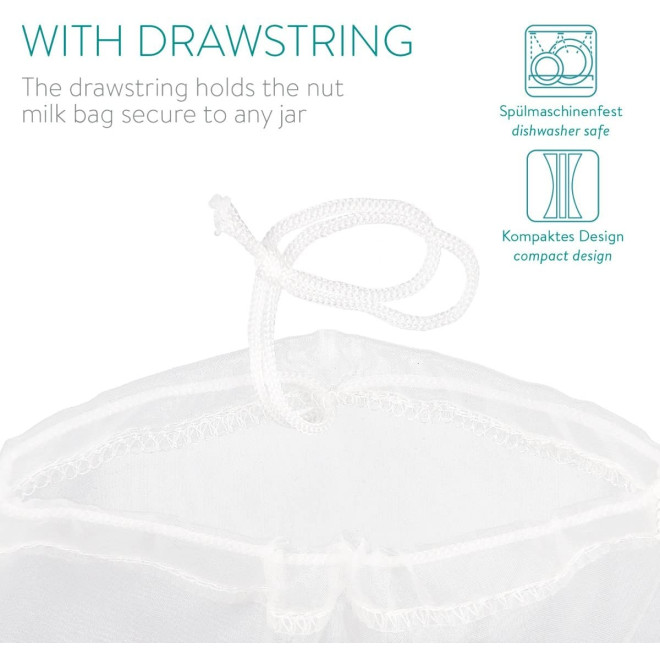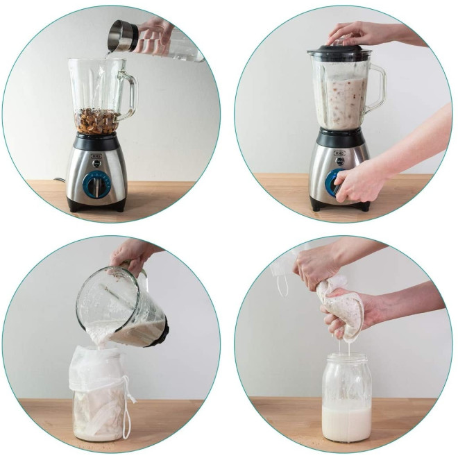 Το υλικό 100% πλέγμα Nylon εξασφαλίζει ότι θα απολαμβάνετε κρεμώδες και μεταξένια ροφήματα! Μπορεί επίσης να χρησιμοποιηθεί για την παρασκευή βουτύρου κλαριφιέ ή τυριού cottage. Ακόμη, μπορείτε να χρησιμοποιήσετε τον εναπομείναντα πολτό γάλακτος αμυγδάλου για να φτιάξετε αλεύρι ή μπισκότα!