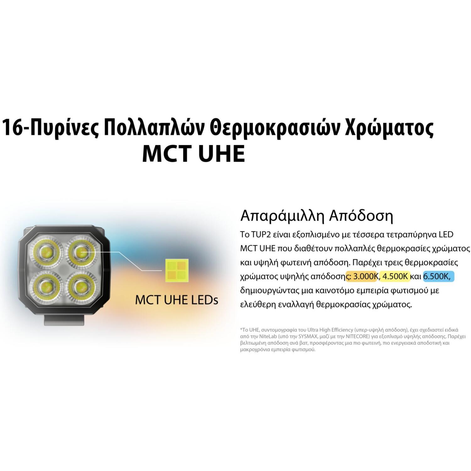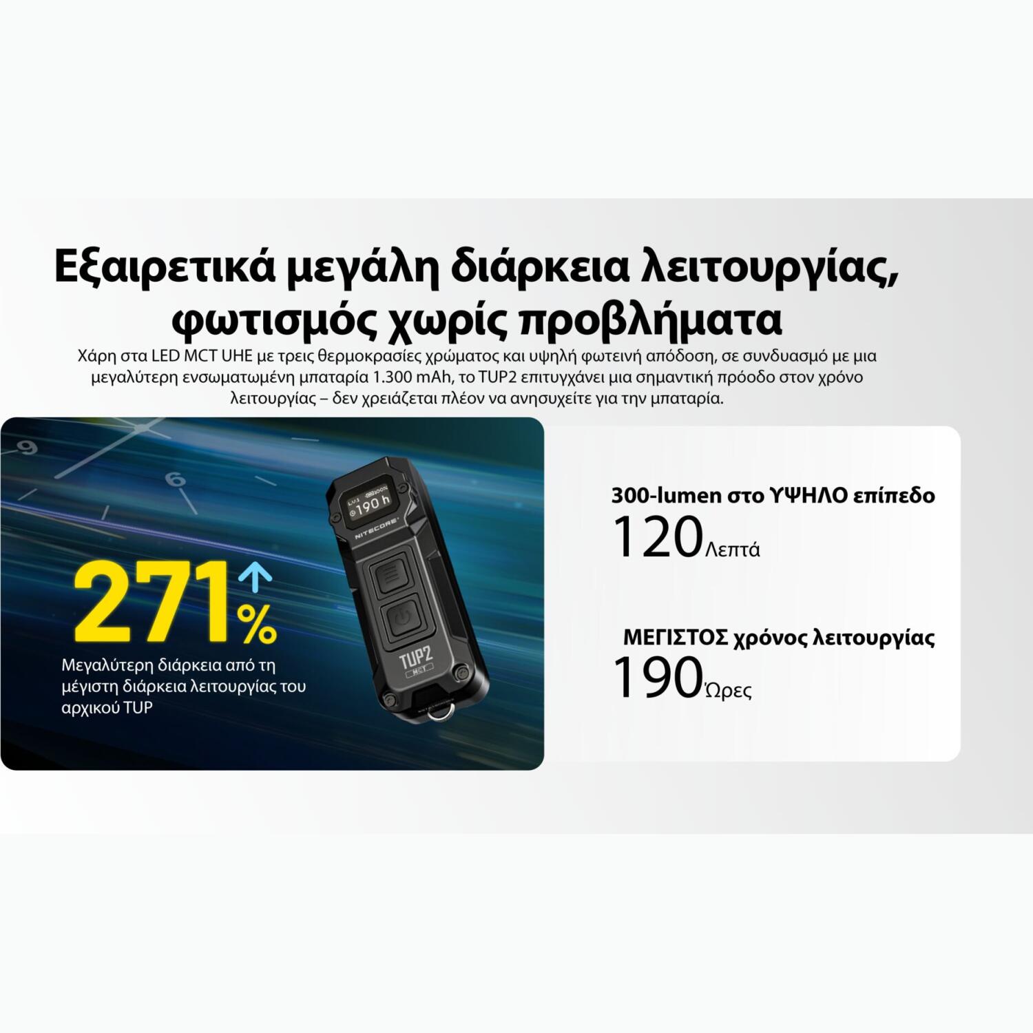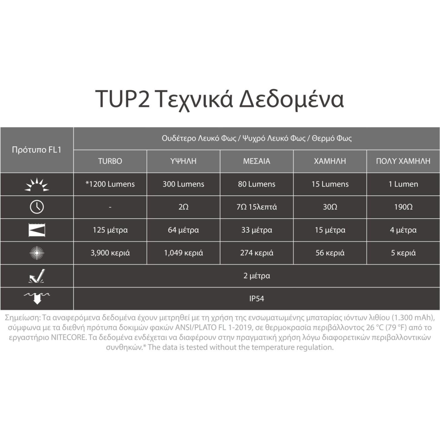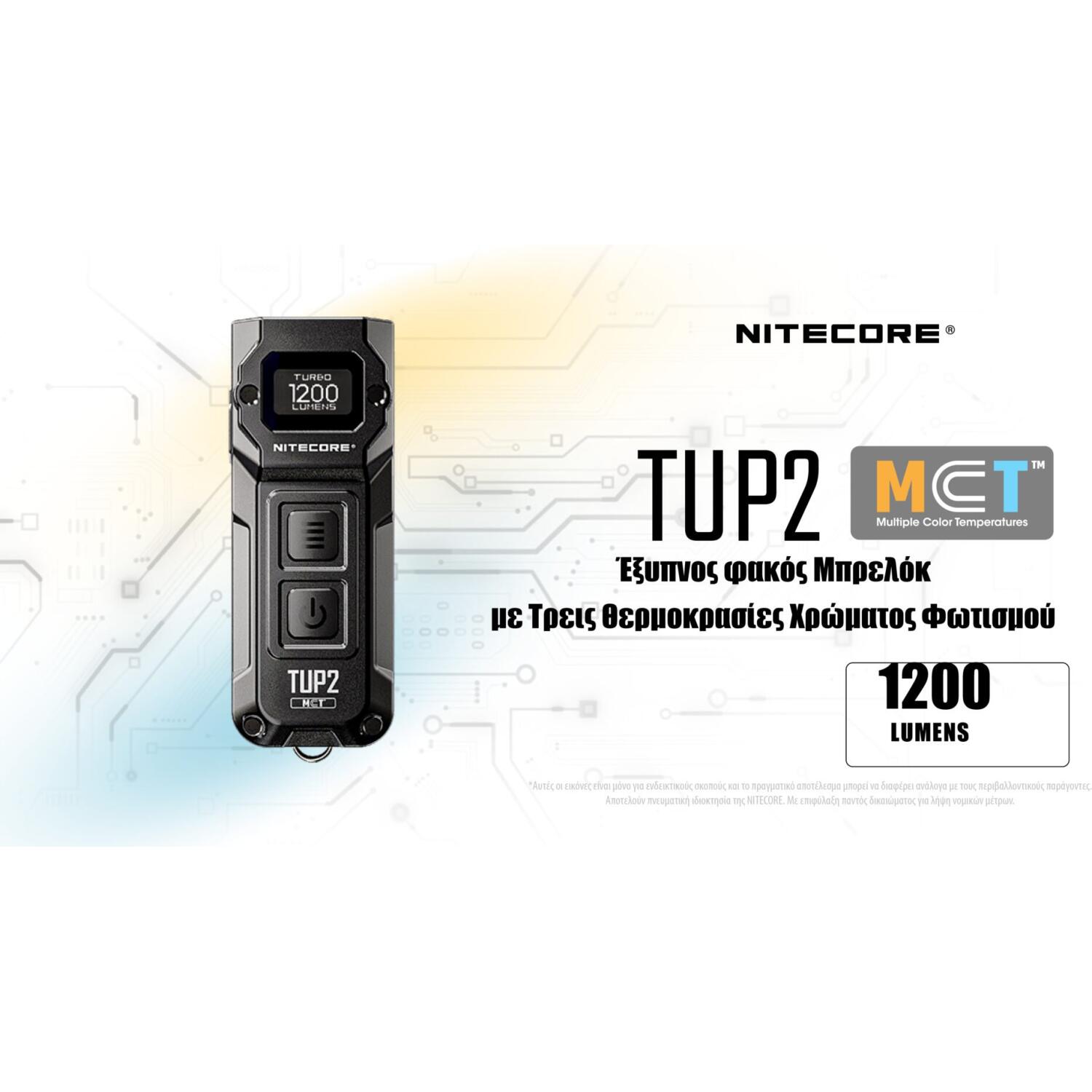 Ο φακός TUP2 της Nitecore είναι ένας LED MCT φακός μπρελόκ με κλιπ, φωτεινότητα 1200 Lumens, επαναφορτιζόμενη μπαταρία 1.300 mAh και αποτελεί μία έξυπνη, υψηλής ποιότητας επιλογή φωτισμού! Επίσης, είναι ανθεκτικός και αδιάβροχος με πολλαπλές θερμοκρασίες χρώματος.