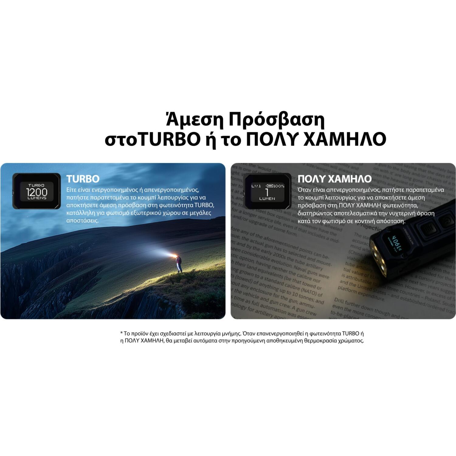 Σημείωση: Το καλώδιο Nitecore USB-C, πωλείται ξεχωριστά και δεν περιλαμβάνεται.